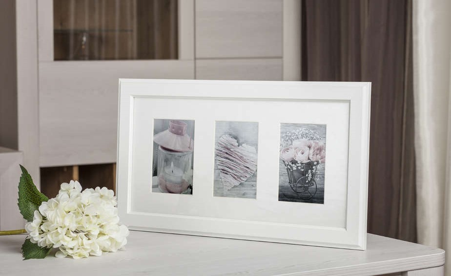 Cornice multipla Malmö Bianca - 3 Foto (10x15 cm) ha spazio per 3 foto di dimensioni standard.