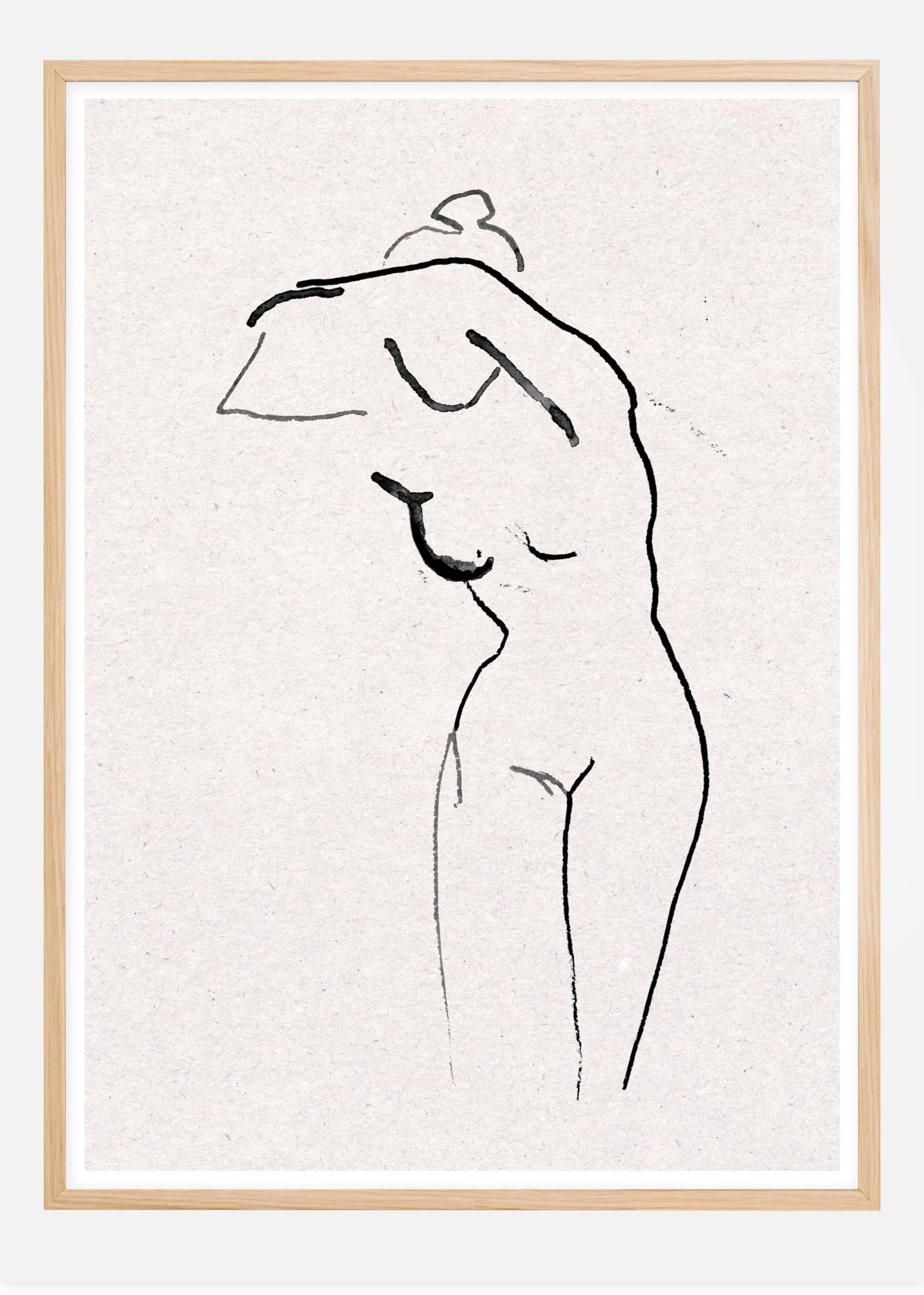 Un poster artistico in acquerello creato da Cora Arte e Illustrazione. Qui una donna prende forma con sottili linee nere su uno sfondo grigio chiaro. Il delicato motivo è poi circondato da un passe-partout bianco leggermente più stretto.