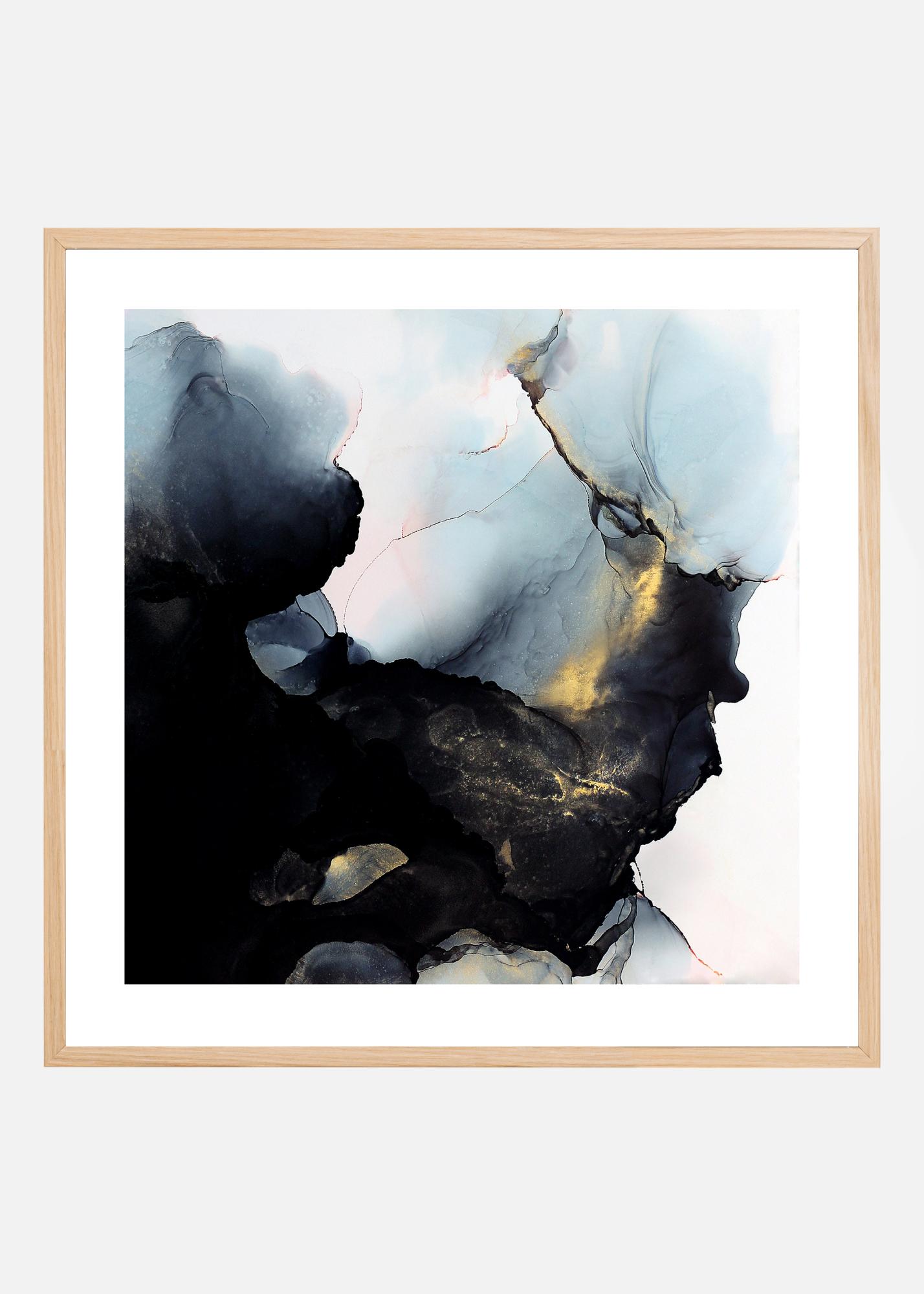 Un poster d'arte astratta in acquerello nelle tonalità di nero, blu e oro con leggere sfumature di rosa, creato dall'artista Gabriella Roberg. Un bellissimo poster che si abbina perfettamente ad altri prodotti della nostra gamma di Gabriella Roberg.