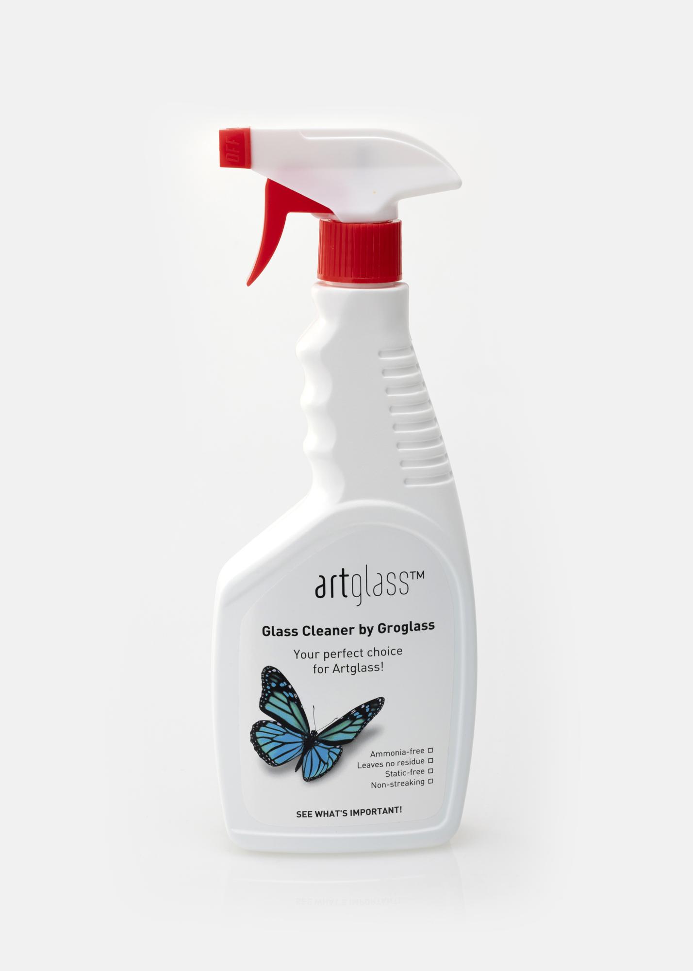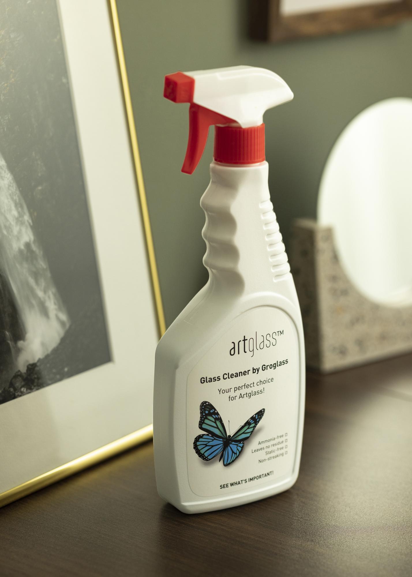Pulisci i tuoi quadri e specchi come un professionista con il detergente per vetri Groglass! Questo detergente per vetri privo di ammoniaca è utilizzato dai professionisti dell'incorniciatura e rimuove facilmente e efficacemente lo sporco, le macchie o le impronte digitali da tutti i tipi di vetri. Il detergente per vetri è privo di sapone, non fa schiuma e non lascia tracce o striature. Ciò rende il detergente per vetri particolarmente adatto per la pulizia del vetro antiriflesso.