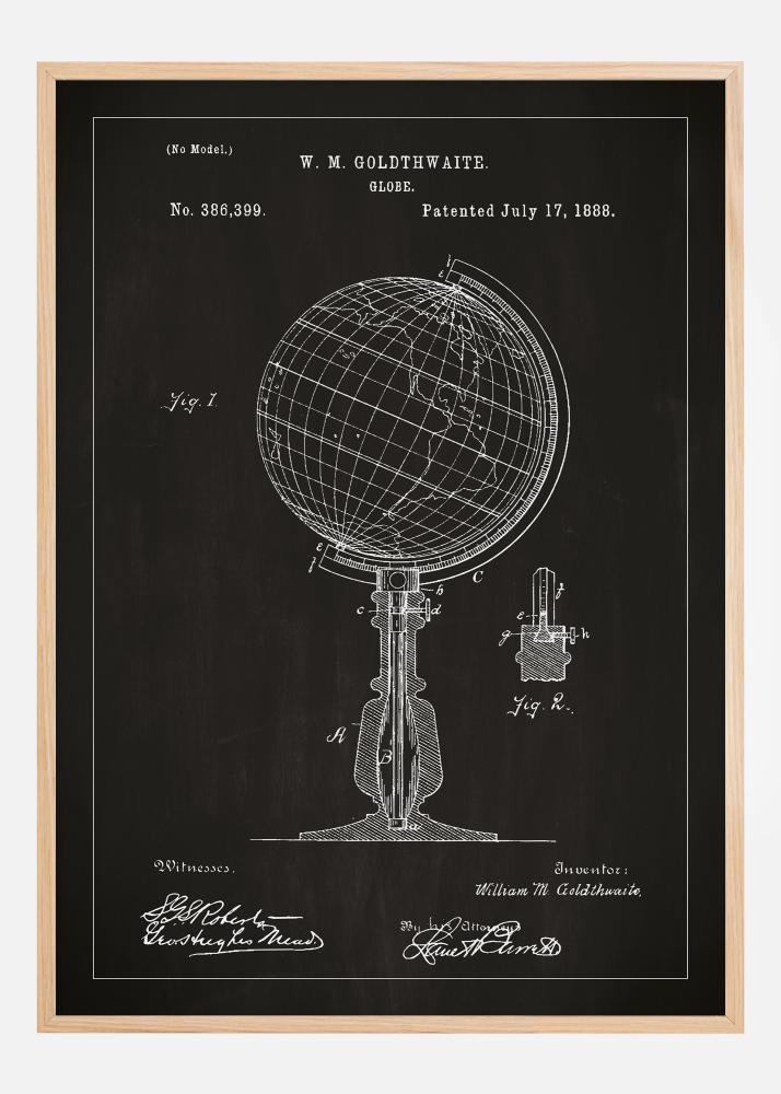 Questo poster di brevetto rappresenta il design di W. M. Goldthwaite di un classico globo terrestre, una creazione dettagliata immortalata tramite il numero di brevetto 386,399 il 17 luglio 1888. Il poster cattura l'eleganza e la bellezza funzionale dell'invenzione, illustrando il mondo in due dimensioni in un modo tale da ispirare scoperte ed esplorazioni. Le sue linee precise e la chiarezza del design lo rendono uno strumento didattico eccellente e un elemento decorativo desiderabile per chiunque apprezzi la geografia e la storia del mondo.