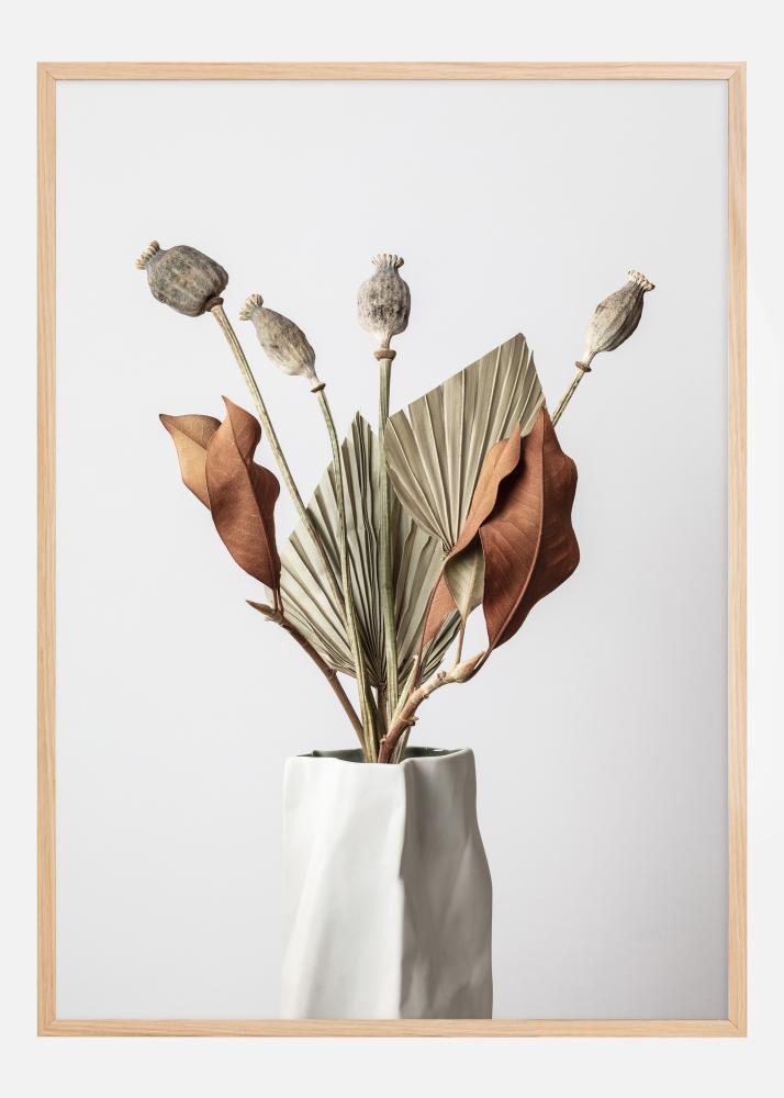 Se sei alla ricerca di un dettaglio d'arredo che aggiunga una sensazione di calma ed eleganza sobria, questo poster è un'alternativa perfetta. Con la sua composizione bilanciata e i colori terrosi, questa stampa offre una dose della sottile bellezza che le piante essiccate portano con sé, ideale per creare un'atmosfera calda e accogliente nella tua casa o sul posto di lavoro.