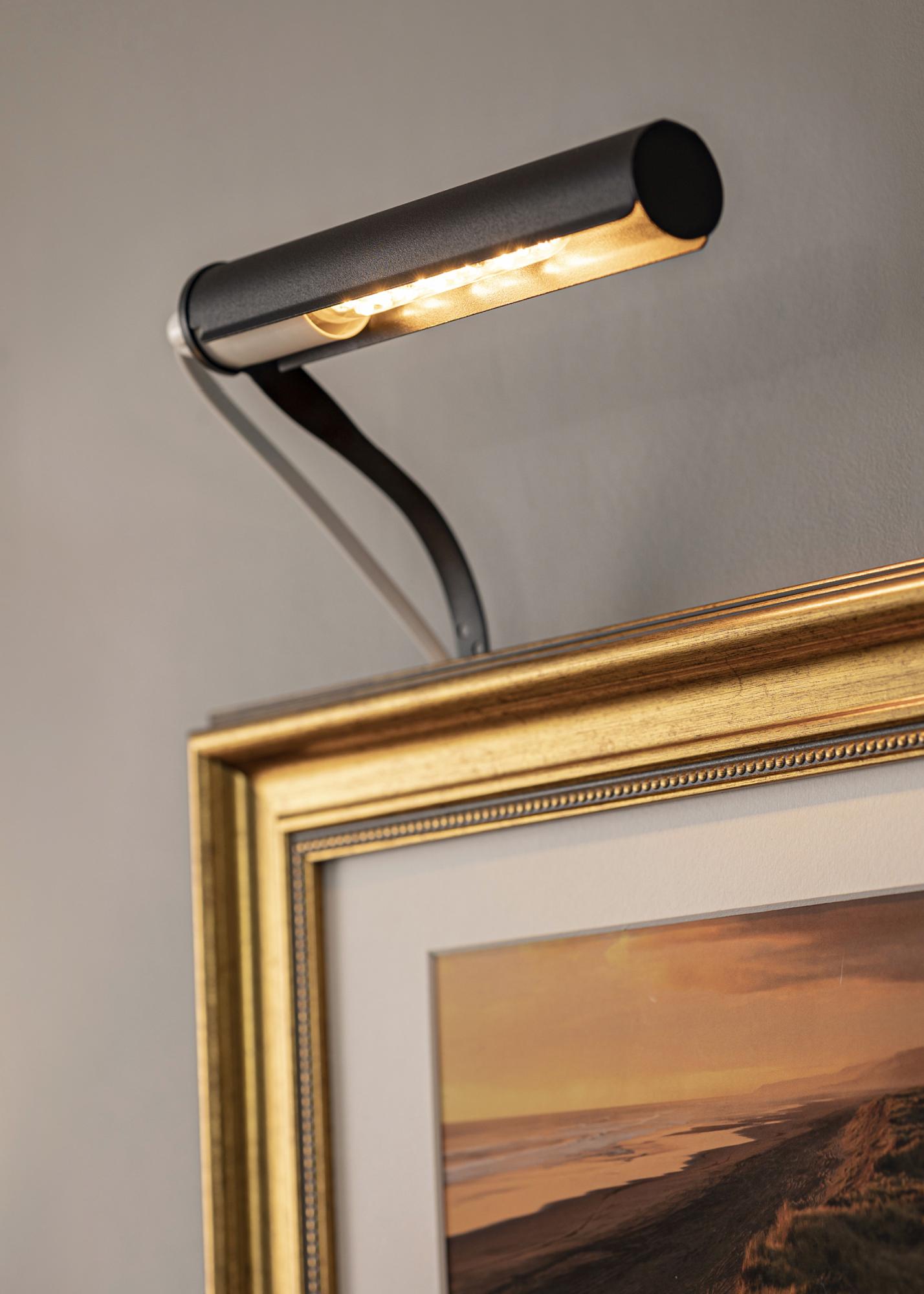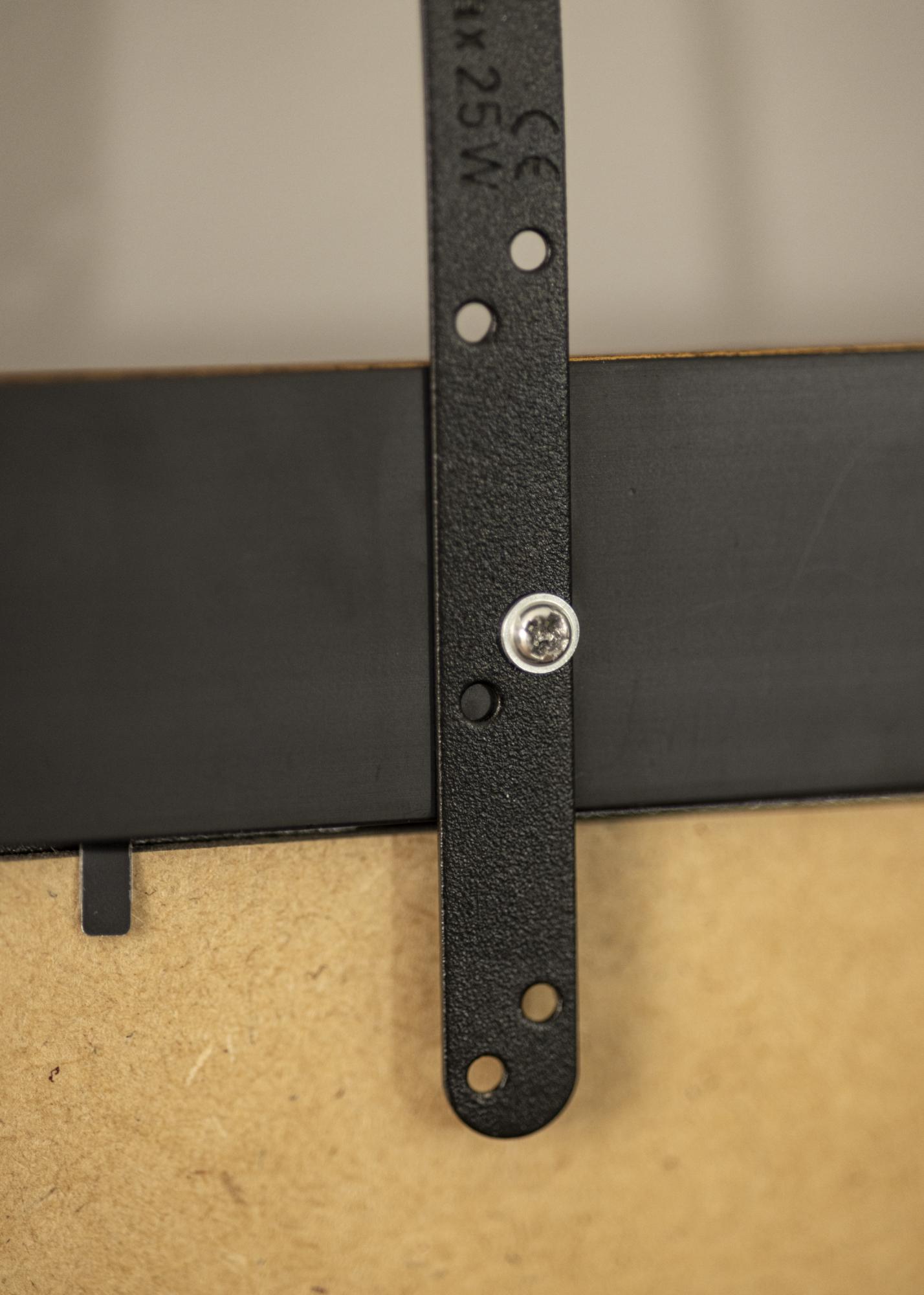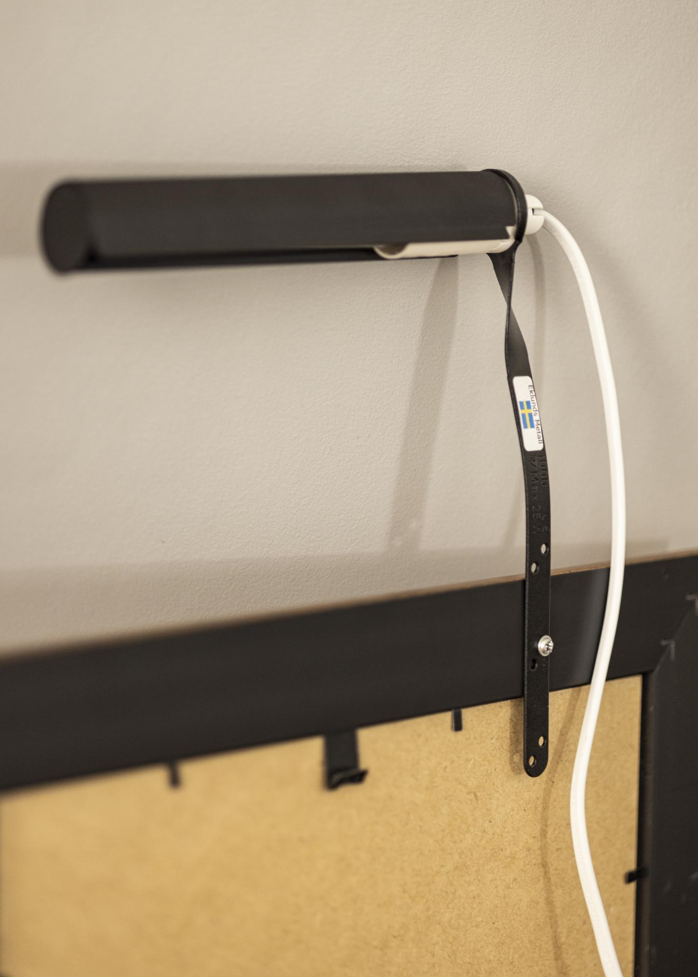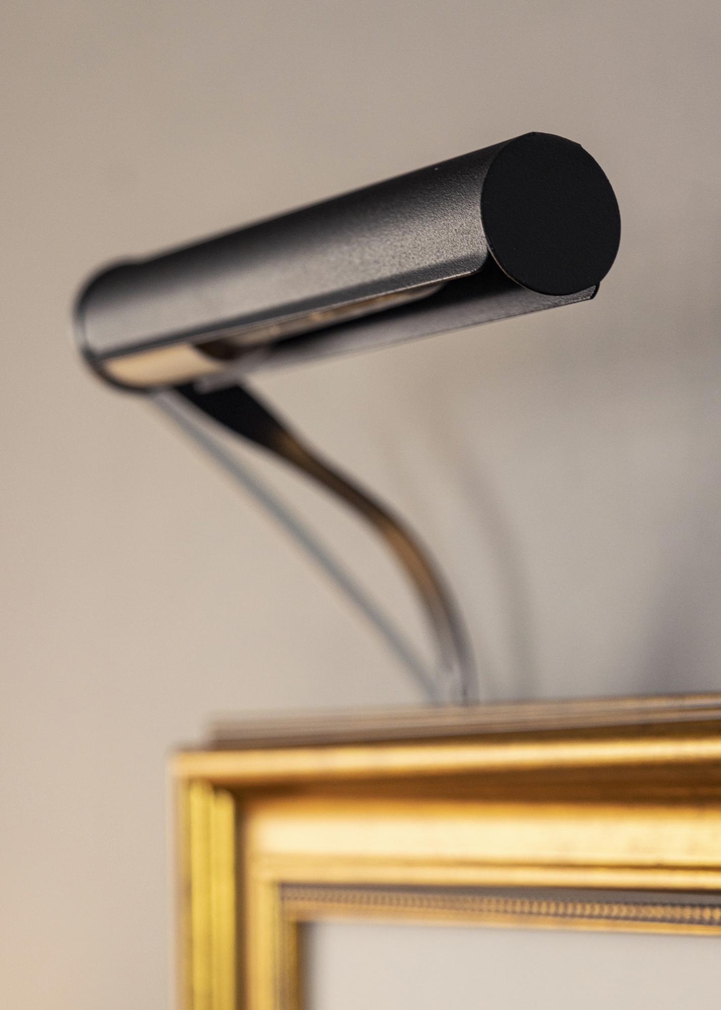 Normalmente si fissa il sistema sul retro della cornice, lo svantaggio è che è necessaria una cornice di legno (alcune cornici composite vanno bene) con un profilo largo per poter essere avvitata alla cornice. Con il nostro supporto da parete non devi pensarci, ma puoi semplicemente montare la tua illuminazione per quadri direttamente sul muro dietro al quadro.