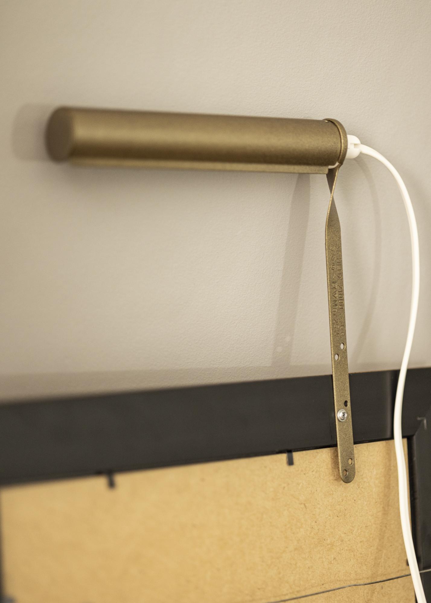 Normalmente si fissa il sistema sul retro della cornice, lo svantaggio è che è necessaria una cornice di legno (alcune cornici composite vanno bene) con un profilo largo per poter essere avvitata alla cornice. Con il nostro supporto da parete non devi pensarci, ma puoi semplicemente montare la tua illuminazione per quadri direttamente sul muro dietro al quadro.