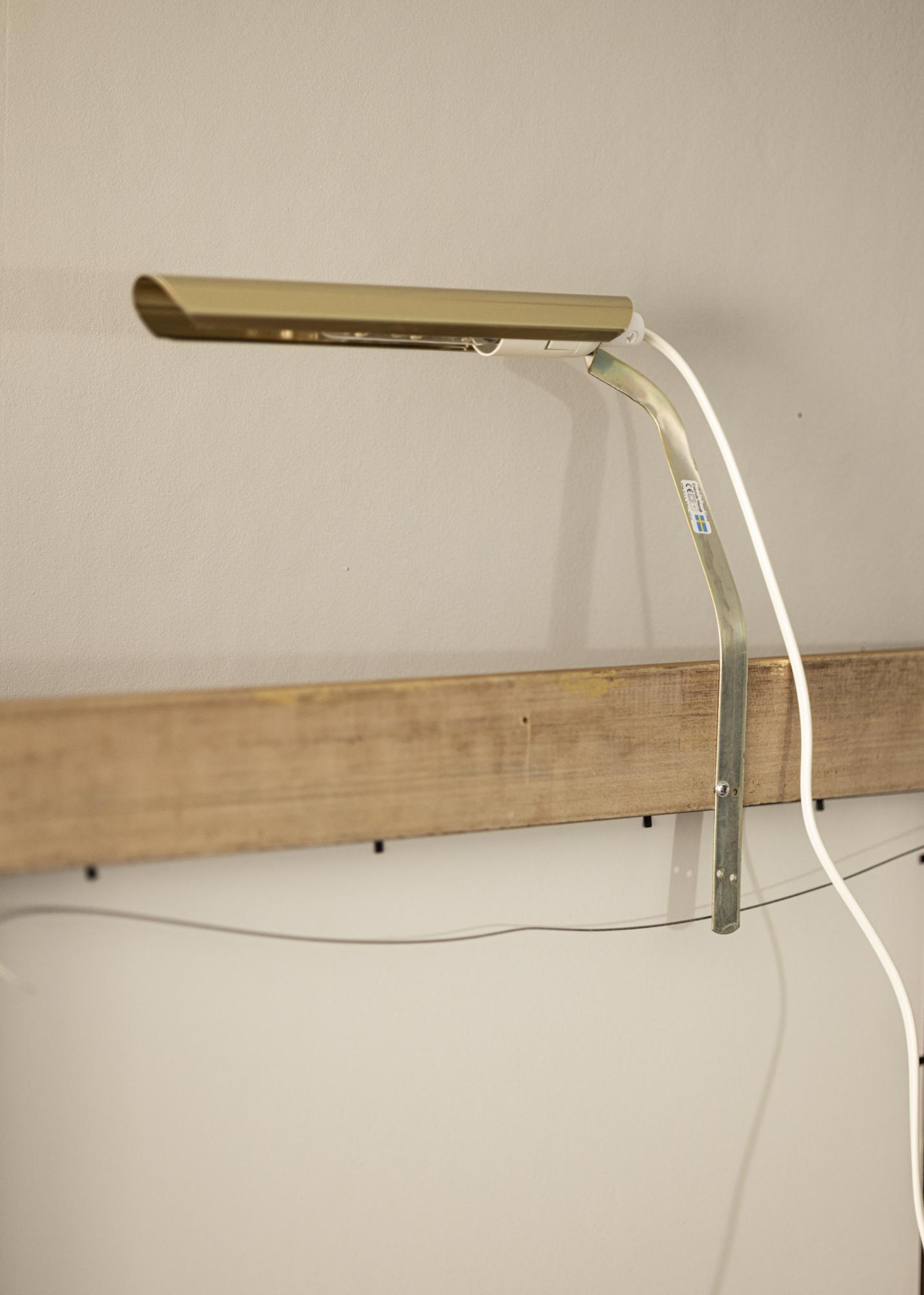 Normalmente si applica l'illuminazione per quadri sul retro della cornice, il lato negativo di ciò è che è necessaria una cornice di legno (anche alcune cornici composite vanno bene) con un profilo largo per poter avvitare nella cornice. Con il nostro supporto da parete non devi pensarci, ma puoi semplicemente montare la tua illuminazione per quadri direttamente sul muro dietro al quadro.