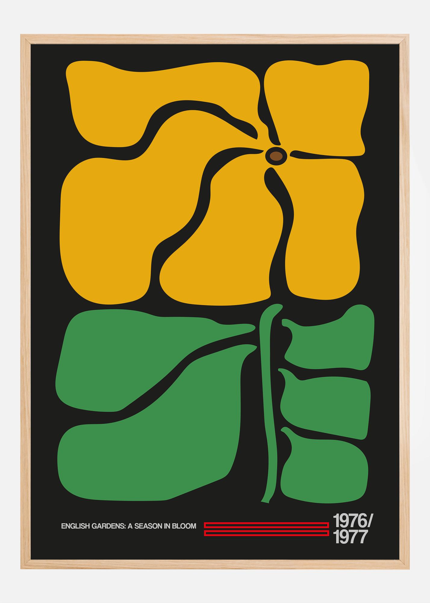 Questo poster è un'interpretazione stilizzata e concettuale delle meraviglie della natura, e il testo '1976/1977' dona un senso di evento storico o ricorrente, come una fioritura annuale o un'esposizione speciale. Il design è minimalista, ma espressivo, e utilizza forme geometriche per rappresentare un fiore e le sue foglie in un modo quasi astratto. È una scelta ideale per chiunque apprezzi l'arte che cattura l'essenza della natura senza descriverla nella sua forma letterale. Questo poster susciterà sicuramente conversazioni e ammirazione in ogni stanza in cui verrà esposto.
