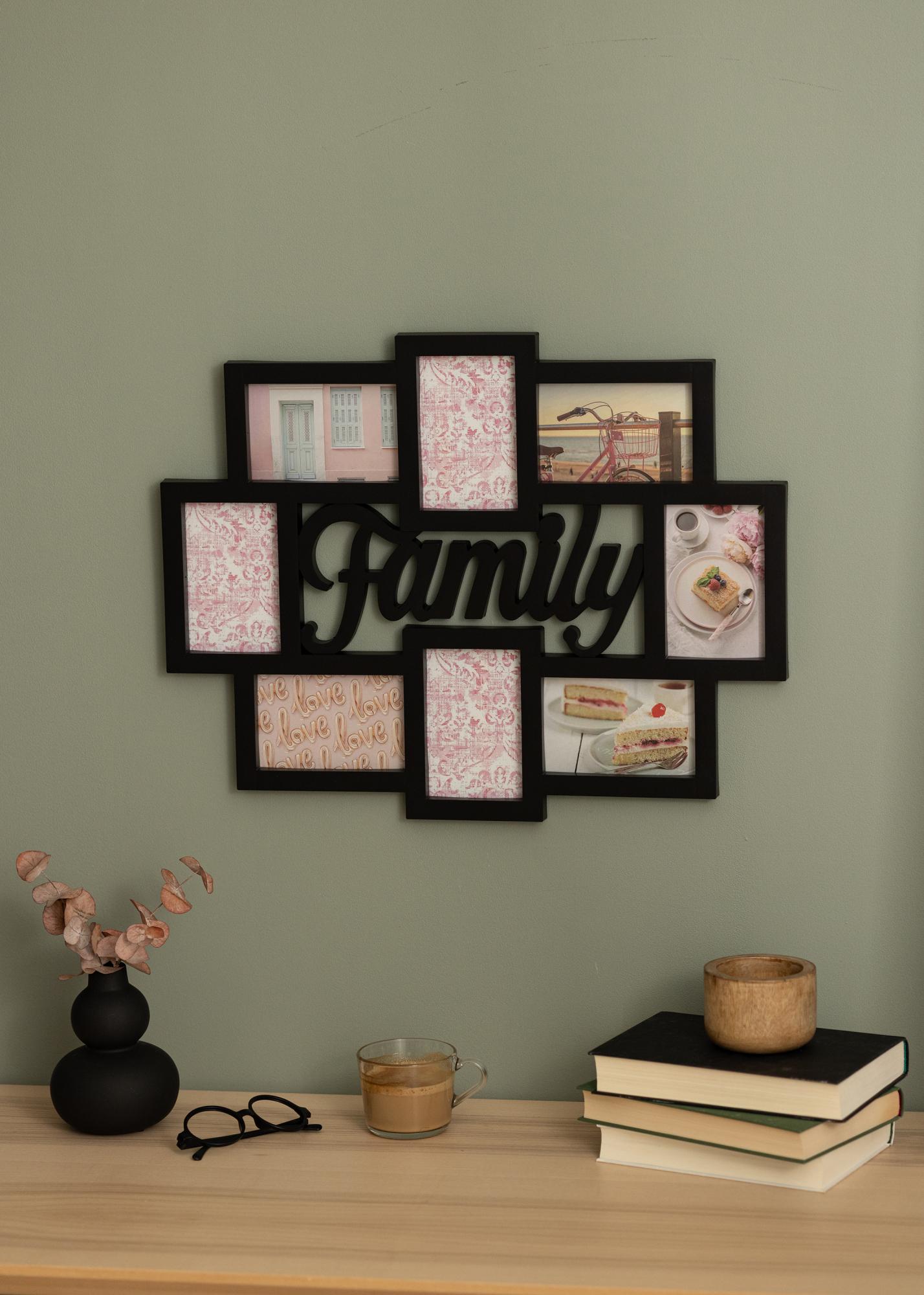 Appendi foto di tutta la famiglia in una Cornice multipla elegante! Questa cornice nera può contenere 8 foto di dimensioni 10x15 cm, che vengono posizionate intorno al testo "Family" intagliato al centro della cornice. Ci sono spazi per foto sia in formato verticale che orizzontale, in modo da poter essere più flessibili nella scelta delle immagini da inserire nella cornice. Per montare le tue foto nella Cornice multipla, devi allentare il retro della cornice utilizzando le clip girevoli, per poi semplicemente posizionare le tue foto dove desideri.