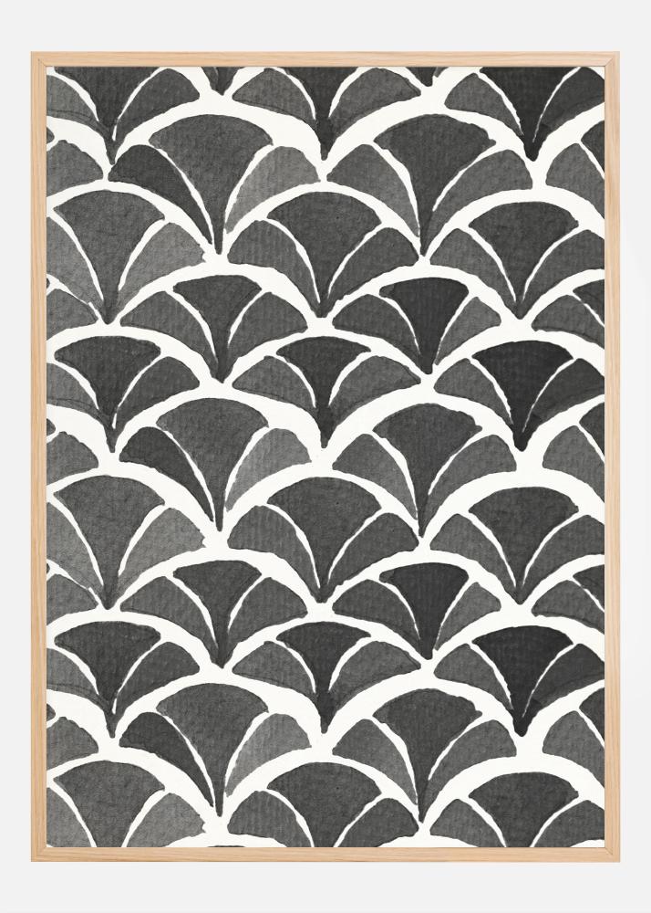 Dai al tuo spazio un tocco di eleganza artistica con questo poster che presenta un affascinante motivo di piume di foglia in bianco e nero. Questa stampa presenta un motivo ripetitivo che ricorda i ventilatori vintage, disposti ritmicamente su tutta la superficie per creare un senso di movimento e simmetria. Il contrasto elegante tra il nero e il bianco offre un aspetto classico che si adatta a molti stili di arredamento diversi e ambienti.