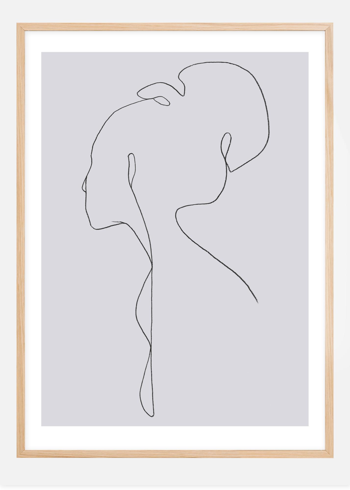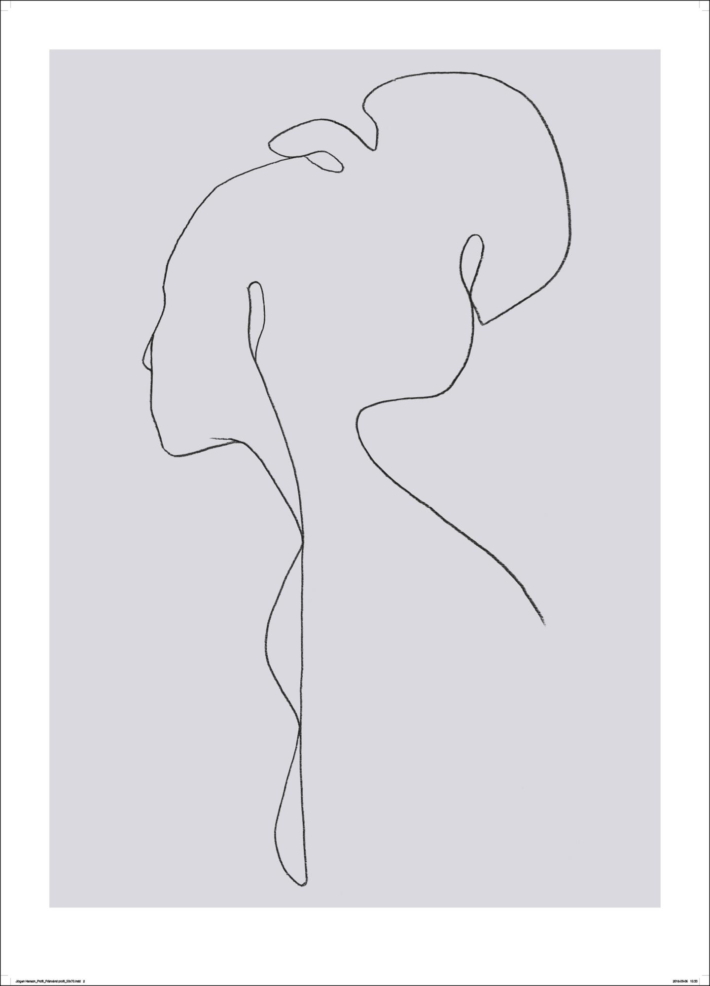 Con linee nere fragili su uno sfondo grigiastro, prende forma il profilo di una donna. Il suo sguardo è rivolto lontano dall'osservatore e i suoi capelli sono raccolti in un nodo sulla testa. Un poster bello e elegante creato da Jörgen Hansson Art.