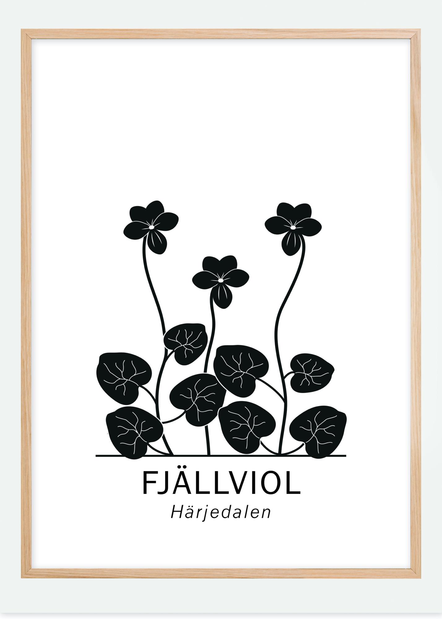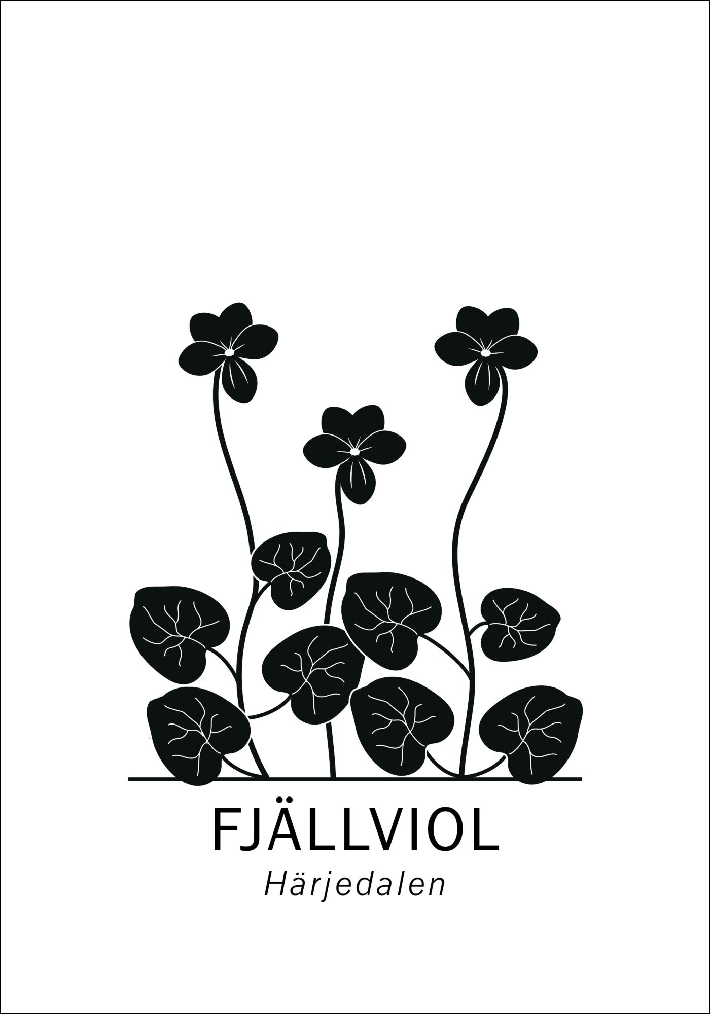Un semplice poster con violette di montagna stampate in nero su uno sfondo bianco. L'eleganza semplice di questo poster aiuta a guidare l'occhio intorno all'immagine. La scritta nera - Violette di montagna, Härjedalen - porta lo sguardo alle tre diverse fioriture che danzano insieme al centro. Per fortuna, appendi questa splendida immagine al tuo muro.