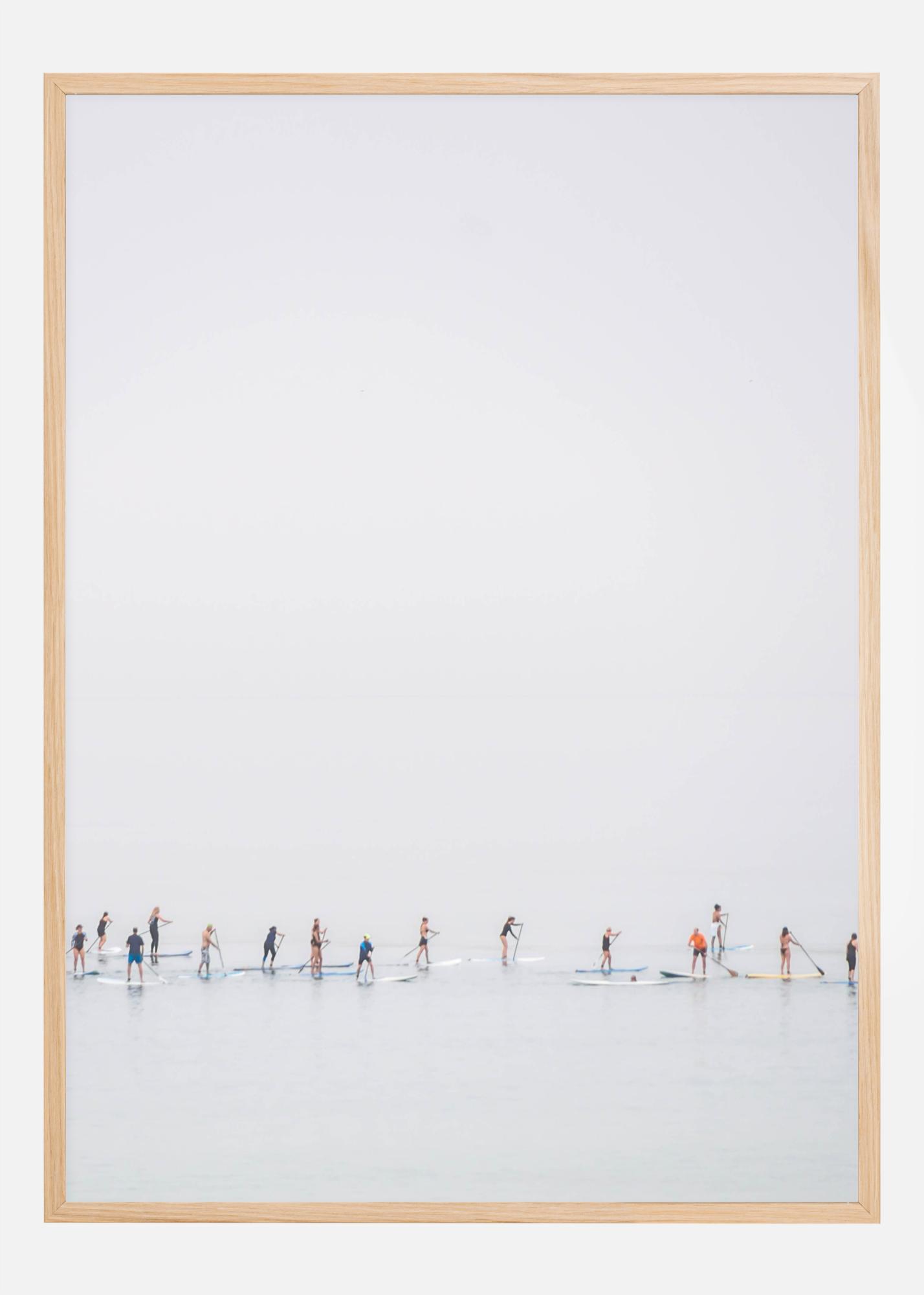 Un poster grandangolare con un gruppo di bambini che giocano in mare. Cattura la grandezza di quest'opera minimalista. Tutti i bambini riempiono la parte inferiore dell'immagine mentre il vasto mare e il cielo si estendono sopra e sotto di loro. Crea l'illusione di luce e spazio con questa immagine estesa.
