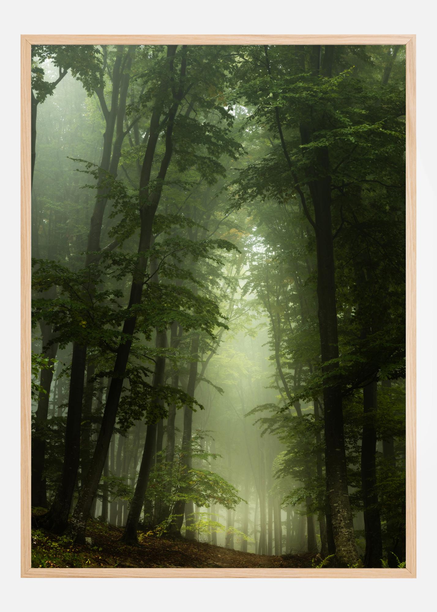 Questo poster atmosferico ti invita a perderti in una foresta avvolta nella nebbia, dove ogni albero sembra raccontare la propria storia. La soffice foschia che avvolge i robusti tronchi degli alberi e il vivo fogliame verde crea una scena onirica che sembra estratta da un altro mondo. La luce soffusa che filtra attraverso il fogliame aggiunge una sensazione di mistero e tranquillità.