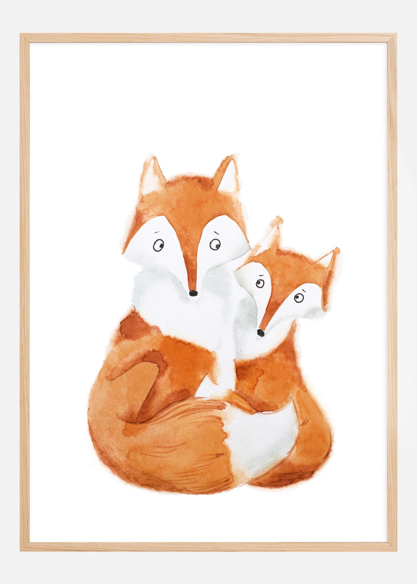 Infondi un senso di calore e vicinanza familiare con questo adorabile poster della famiglia di volpi. Raffigura una grande volpe che abbraccia il suo cucciolo, un'immagine che emana amore e sicurezza. Le tonalità morbide e terrose di ruggine e bianco nell'illustrazione creano un effetto naturale e calmante, perfetto per creare un'atmosfera accogliente in una stanza dei bambini o in qualsiasi altra parte della casa dove si voglia evidenziare calore e cura.