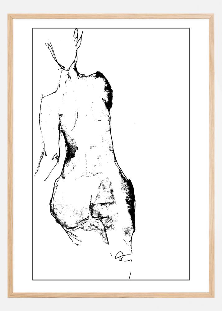 Un poster di disegno di figura drammatica con la schiena di una donna. Disegnato con inchiostro, c'è una fluidità in questo disegno che contribuisce alle affascinanti curve del corpo del modello. Abbinare questo con un poster di disegno di figura simile per ottenere il miglior effetto.