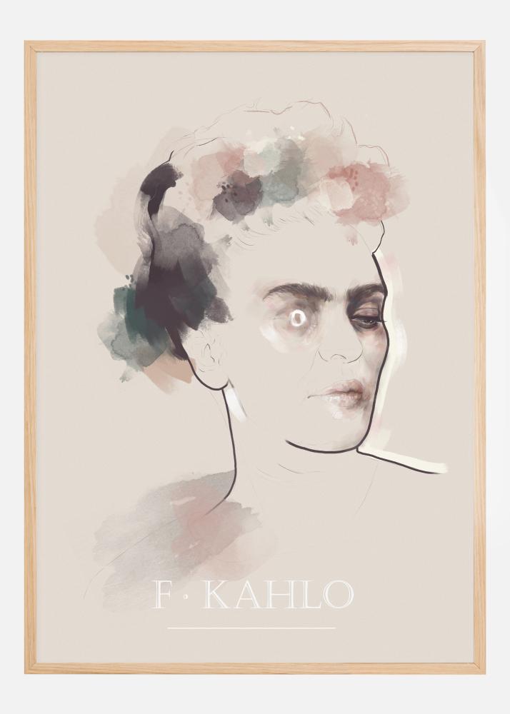 Un poster astratto ritraente Frida Kahlo con fiori nei capelli. Uno schizzo semplice di Frida cattura immediatamente la sua essenza, poiché guarda audacemente fuori dalla tela. Le uniche macchie di colore sono le sue labbra e la fascia di fiori nei suoi capelli. Abbinare questi colori al muro su cui la si appende.