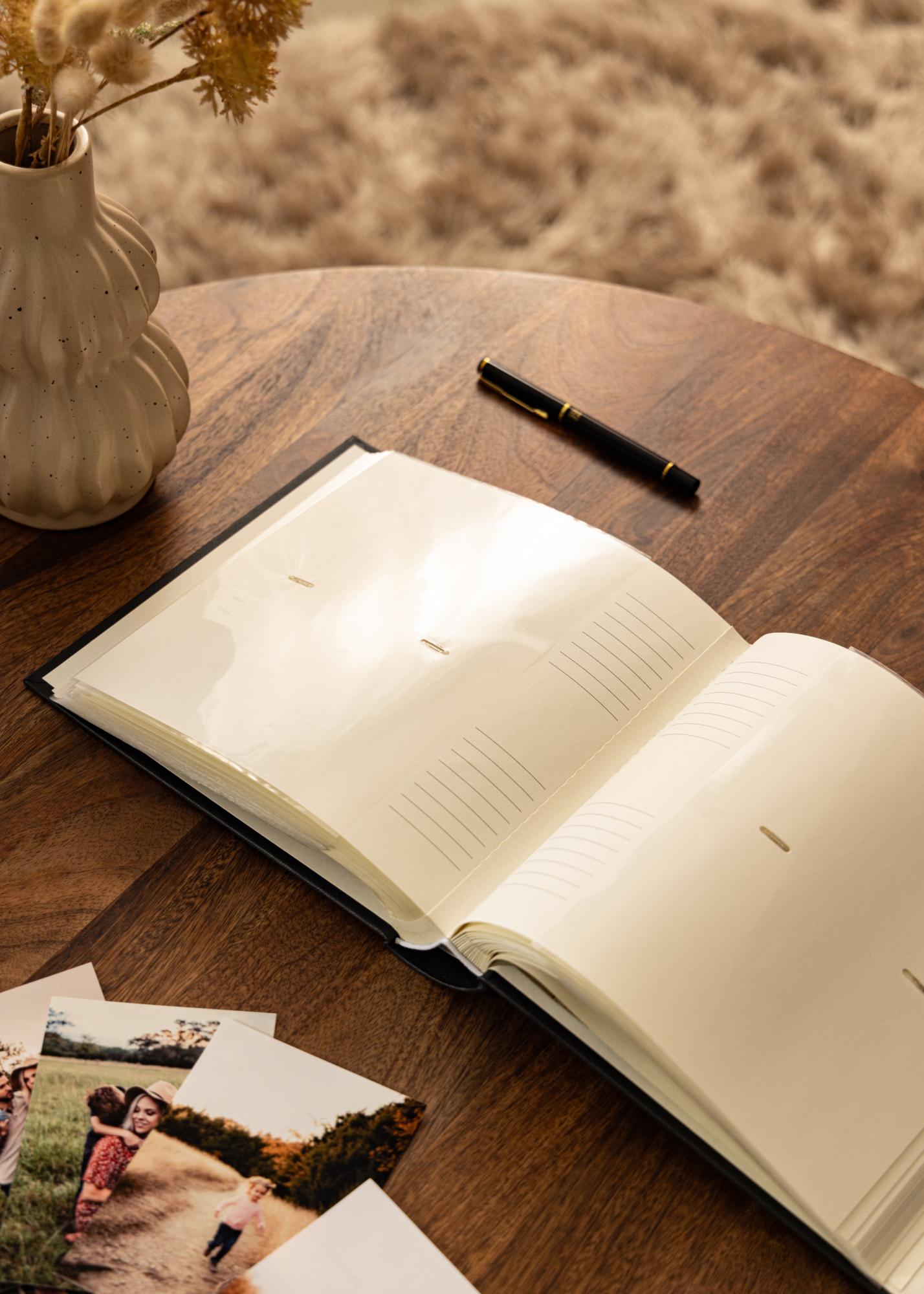 Album fotografico personale con copertina nera di Walther con spazio per 200 foto nel formato 10x15 cm. Le foto vengono facilmente montate in pratiche tasche a scomparsa. Sulla copertina dell'album puoi personalizzarla con una tua immagine (7,5x7,5 cm). L'album ha pagine bianche con spazio per 2 foto. Per ogni foto c'è spazio per note personali. Le pagine dell'album sono naturalmente prive di acidi.