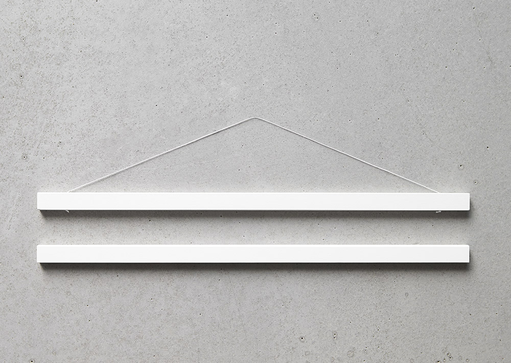 Unico appendi poster con due funzioni nello stesso prodotto. Utilizzato come un classico appendi poster con corda sul muro o rimuovere la corda e posizionare direttamente la barra contro il muro.