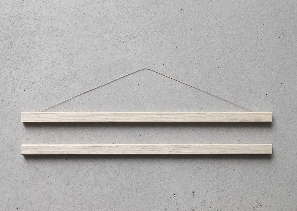 Unico appendi poster con due funzioni nello stesso prodotto. Utilizzato come un classico appendi poster con corda sul muro o rimuovere la corda e posizionare direttamente la barra contro il muro.