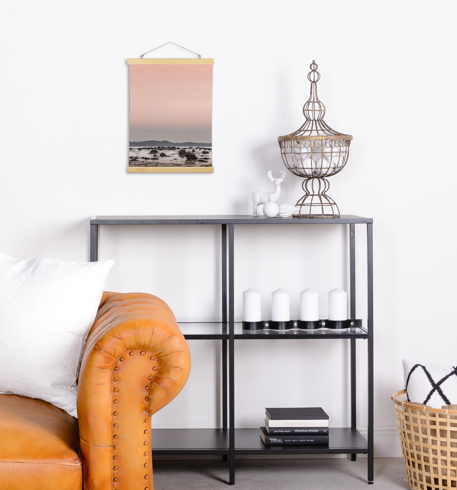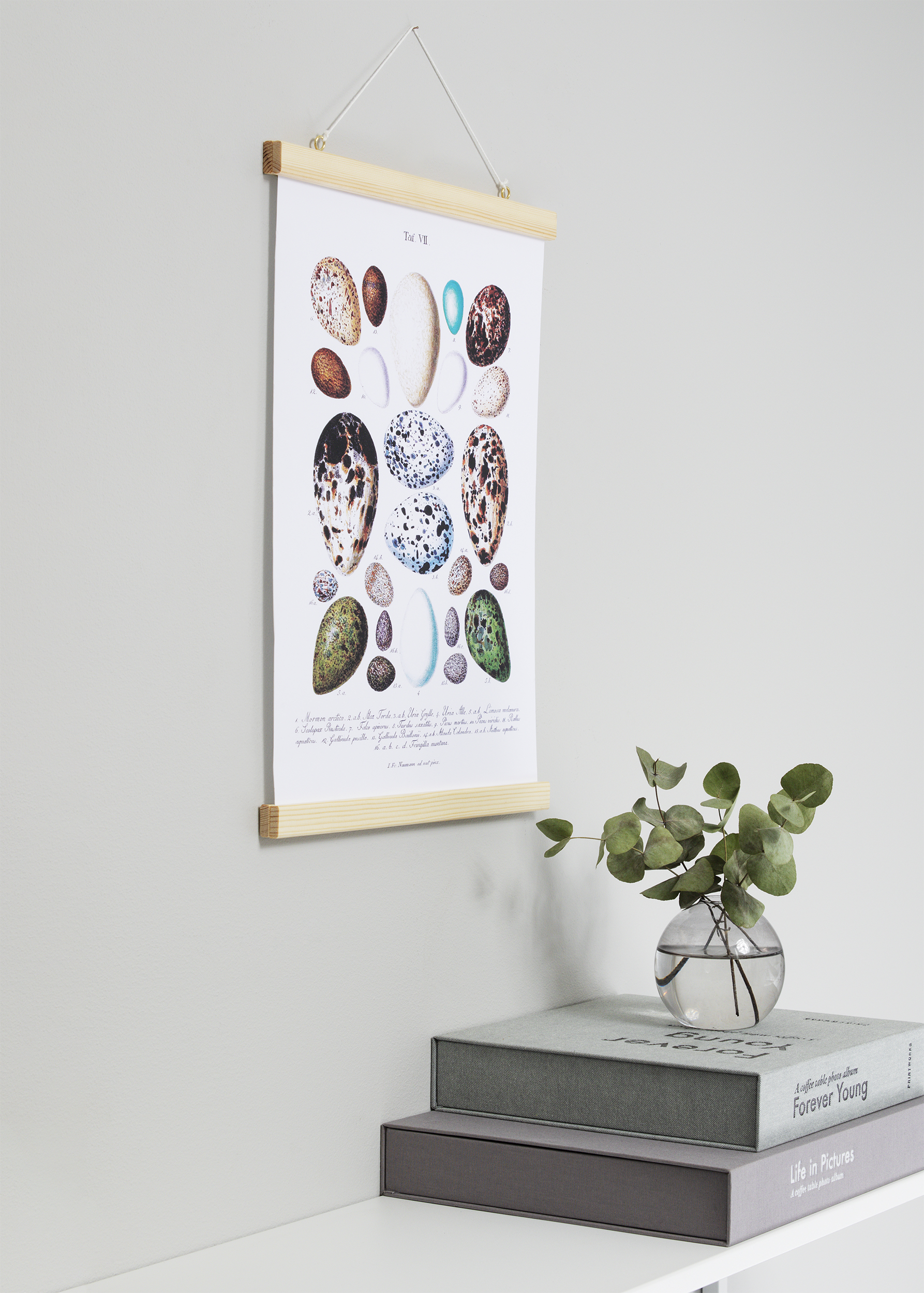Metti il poster o l'ingrandimento fotografico in un elegante appendi poster! La semplice e intelligente struttura permette alla carta di rimanere dritta e bella senza danneggiarsi ai bordi. questo modello è realizzata in legno e si adatta a motivi con una larghezza di 31-40 cm.