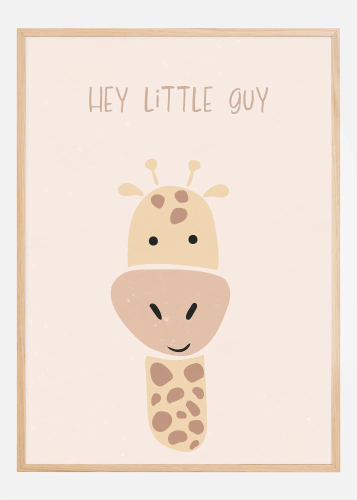 Questa affascinante poster con il testo "HEY LITTLE GUY" e un'illustrazione di un cucciolo di giraffa è la decorazione da parete perfetta per una stanza dei bambini o un tocco giocoso in un'altra stanza luminosa. Il motivo è caratterizzato da colori delicati come il rosa tenue sullo sfondo e tonalità calde beige e marroni nel disegno della giraffa. La giraffa disegnata, con il suo design semplice e adatto ai bambini, porta un grande sorriso e occhi amichevoli, creando un'immediata connessione e contribuendo a un'atmosfera gioiosa e accogliente.