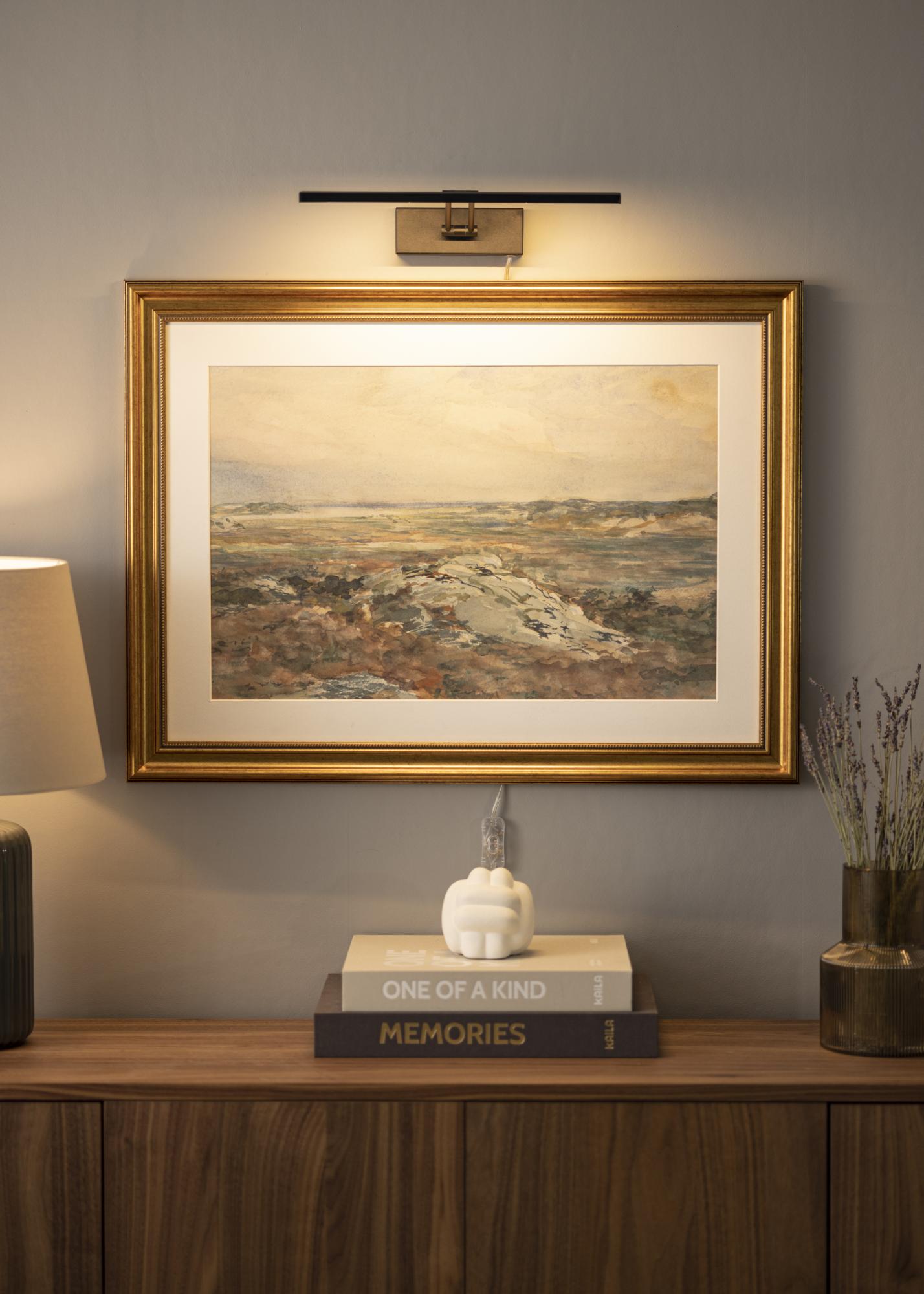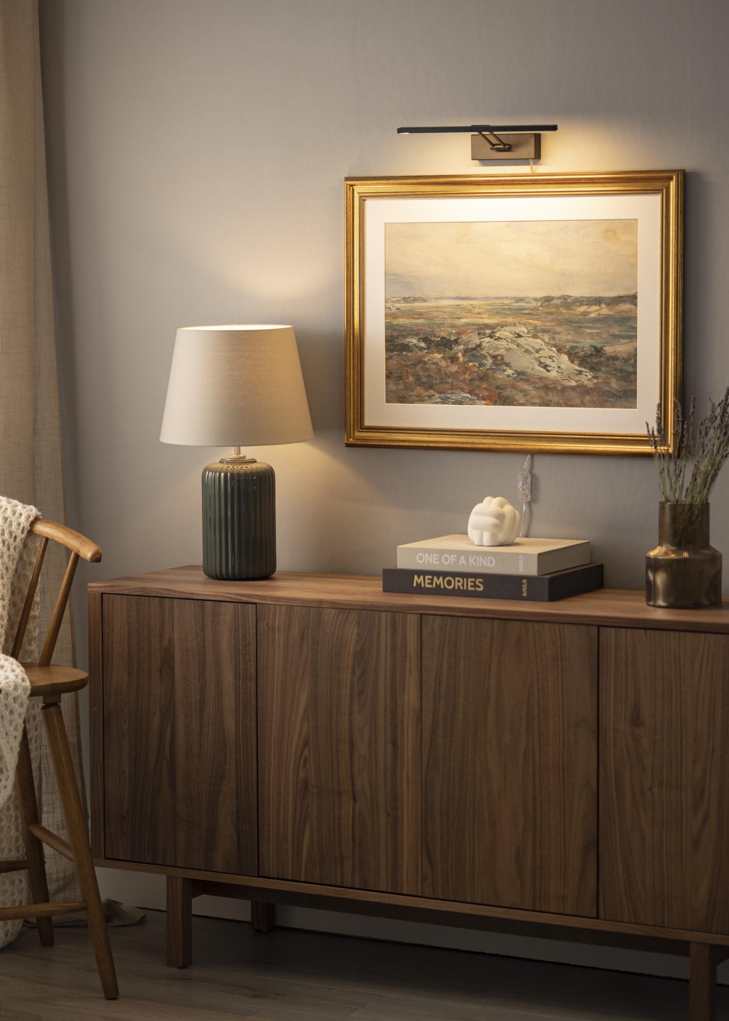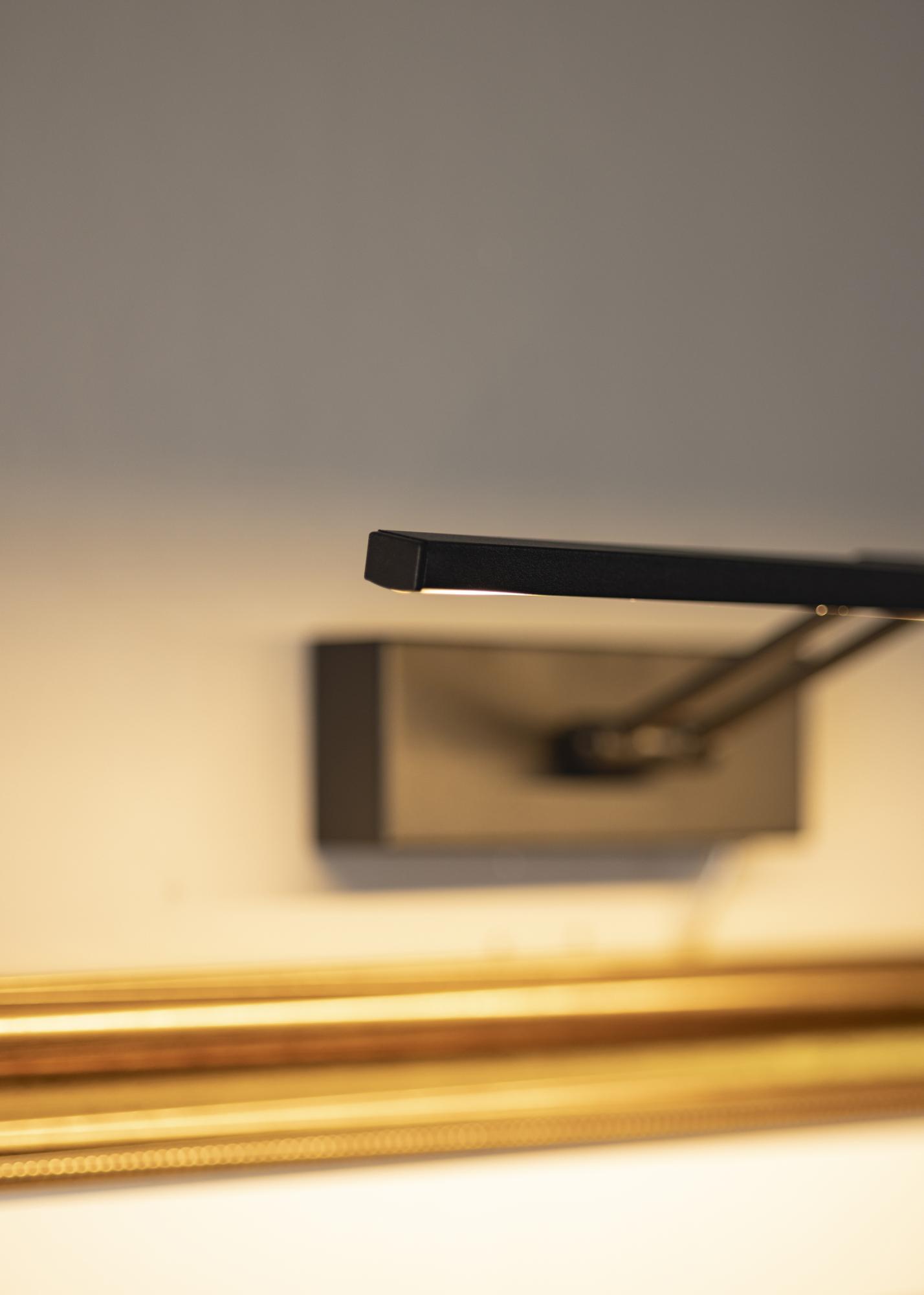 Luci per quadri dal design moderno svedese adatte a quadri con una larghezza di 60-100 cm. L'armatura ha un'altezza di 5 cm e una lunghezza di 37 cm con una distanza dal muro di 20 cm. Con la sua potente illuminazione a LED di 720 lumen, otterrai una piacevole illuminazione anche per quadri più grandi.