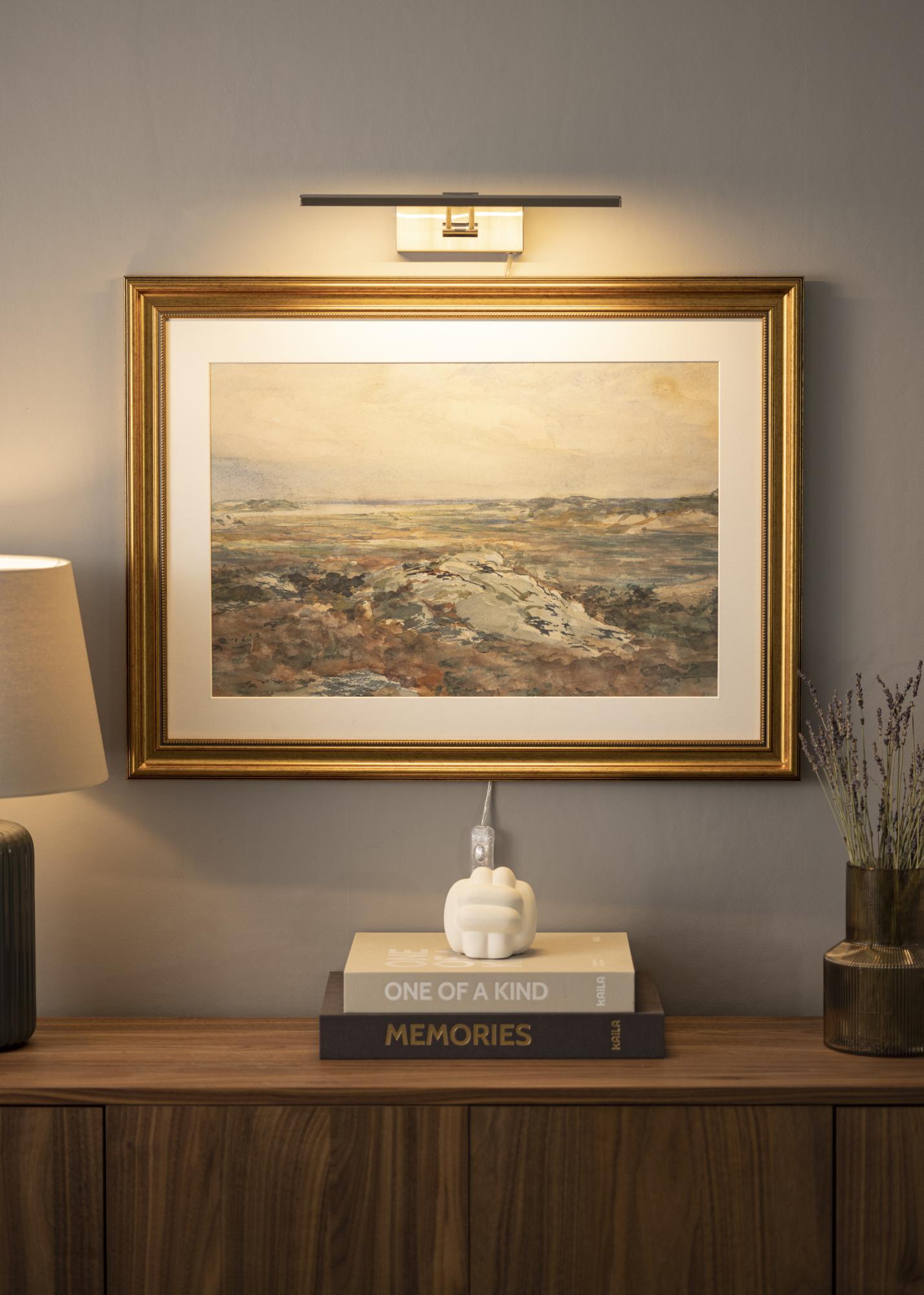 Luci per quadri dal design moderno svedese adatte a quadri con una larghezza di 60-100 cm. L'armatura ha un'altezza di 5 cm e una lunghezza di 37 cm con una distanza dal muro di 20 cm. Con la sua potente illuminazione a LED di 720 lumen, otterrai una piacevole illuminazione anche per quadri più grandi.
