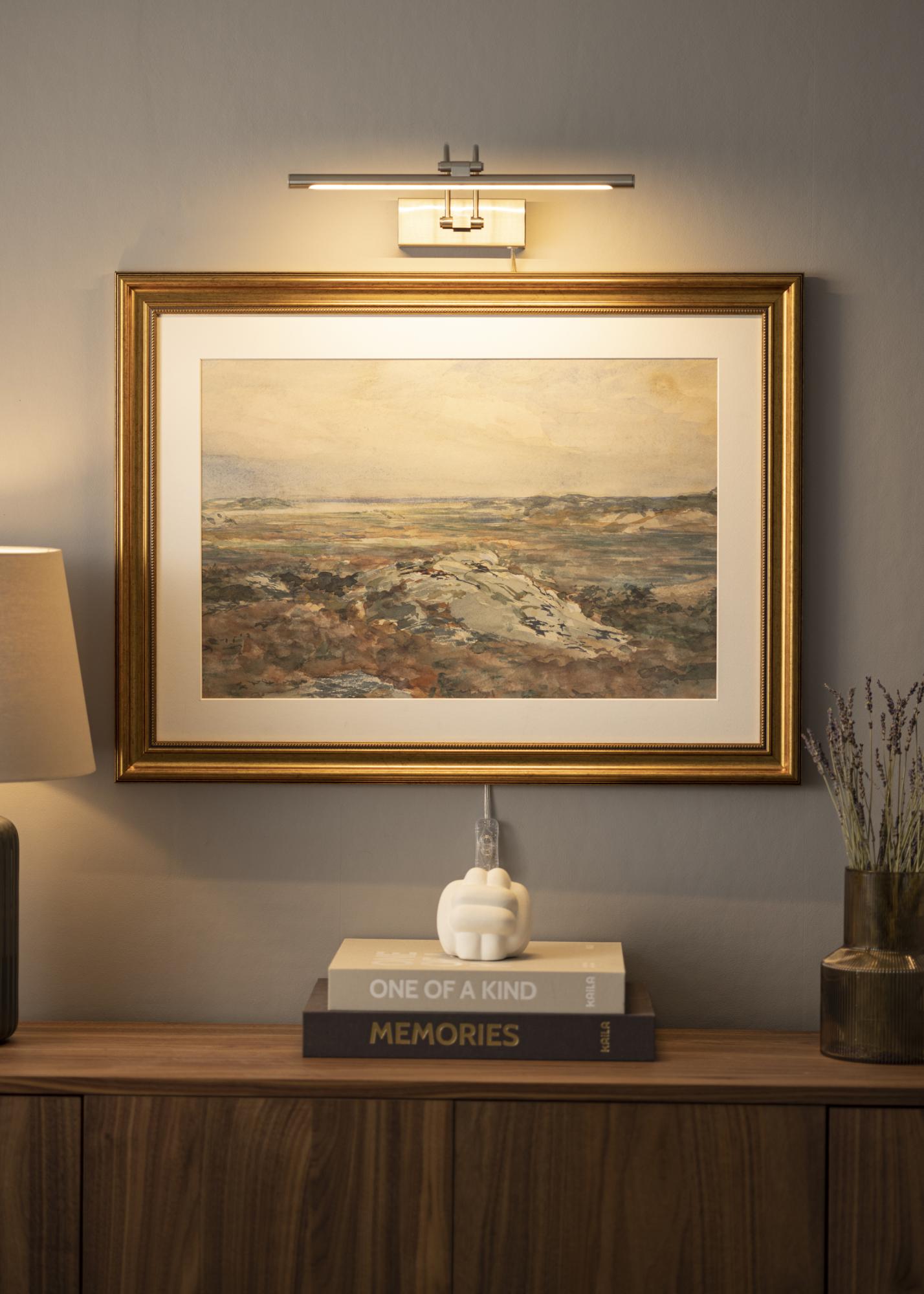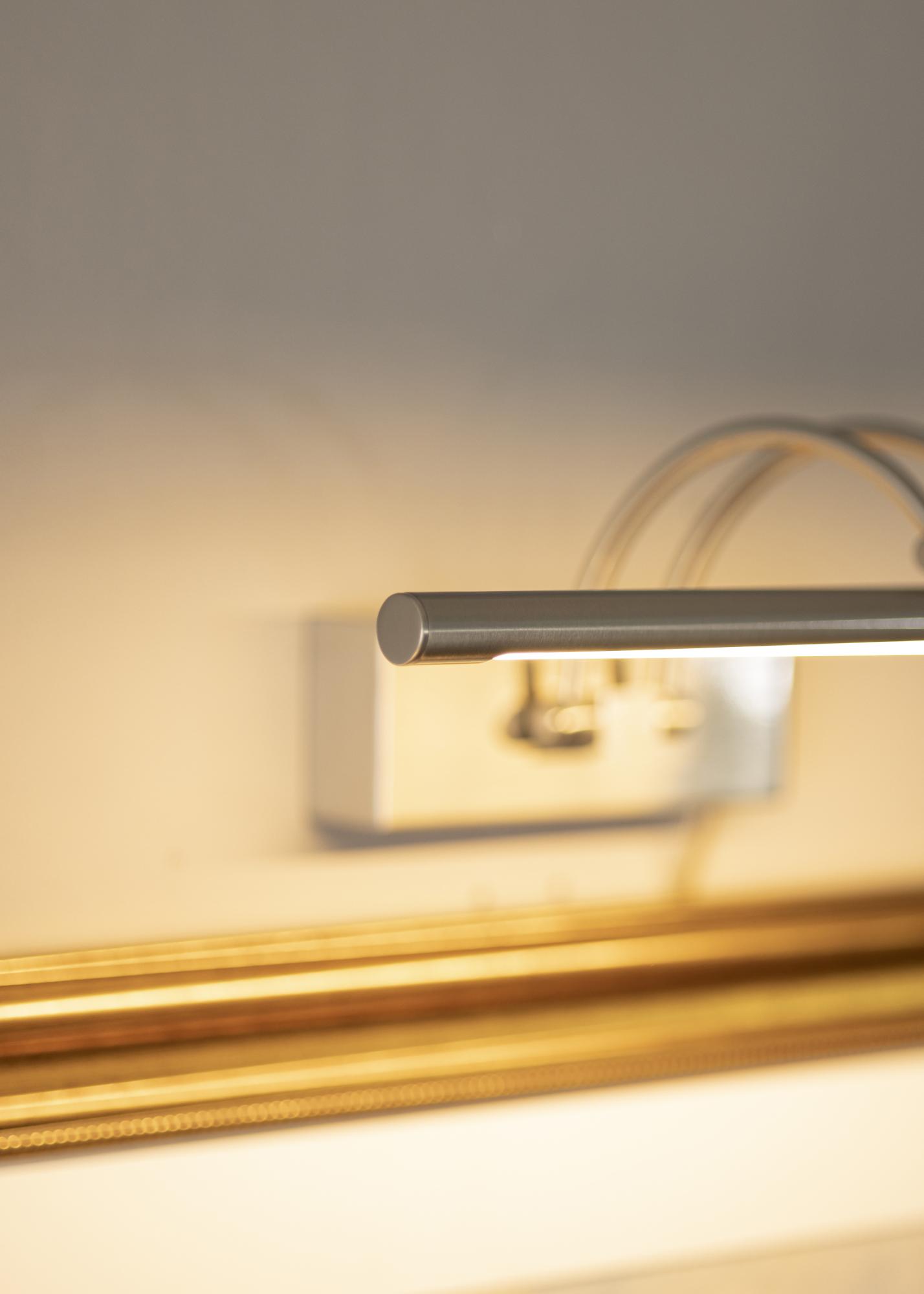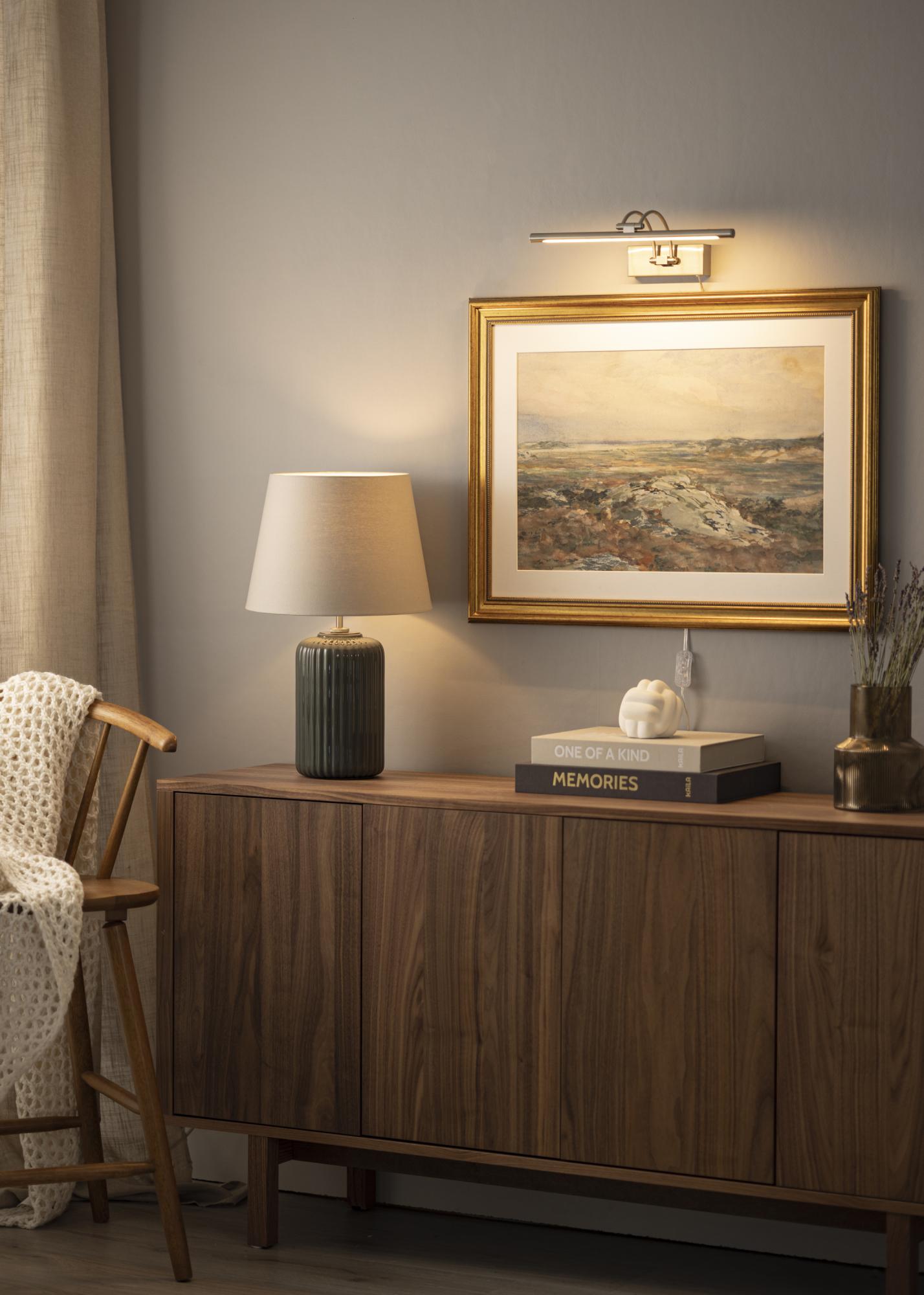 Luci per quadri dal design moderno svedese adatte a quadri con una larghezza di 60-100 cm. L'armatura ha un'altezza di 5 cm e una lunghezza di 37 cm con una distanza dal muro di 20 cm. Con la sua potente illuminazione a LED di 720 lumen, otterrai una piacevole illuminazione anche per quadri più grandi.
