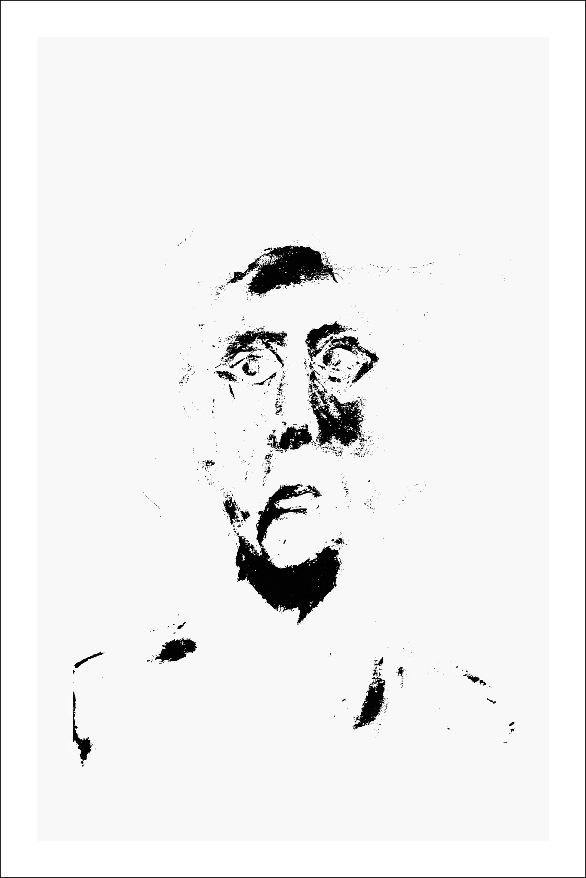Un misterioso ritratto in bianco e nero con testa e spalle. Su uno sfondo bianco, le tonalità scure mettono in risalto i capelli, le guance e il collo della persona. I suoi grandi occhi esprimono paura e mistero. Un'immagine triste e spaventosa che trasmette una sensazione di terrore.