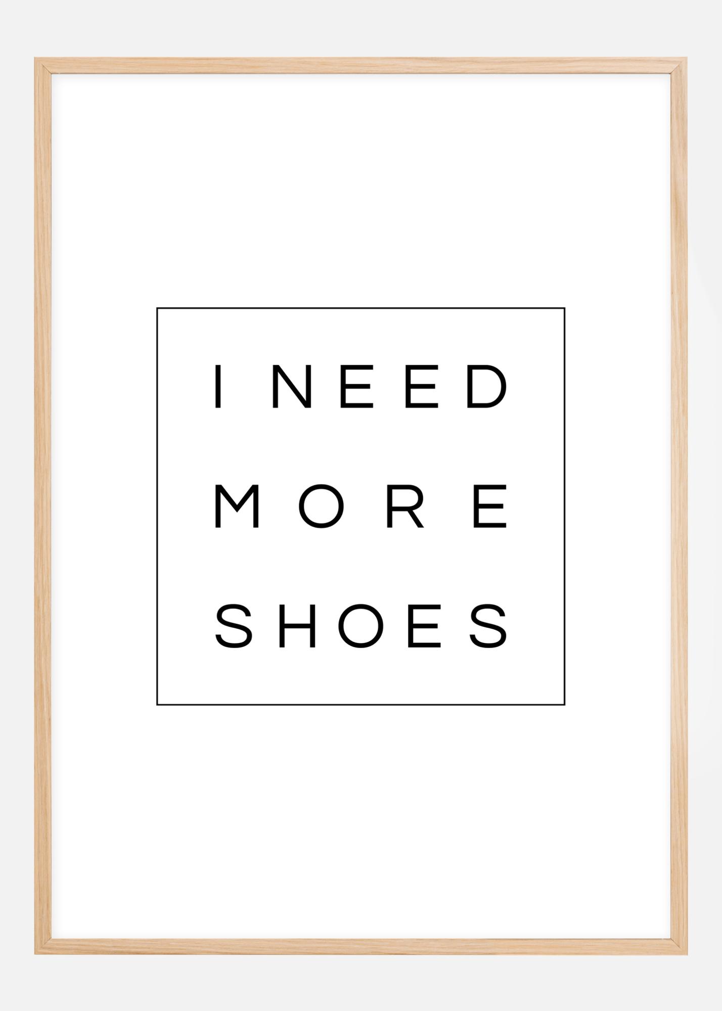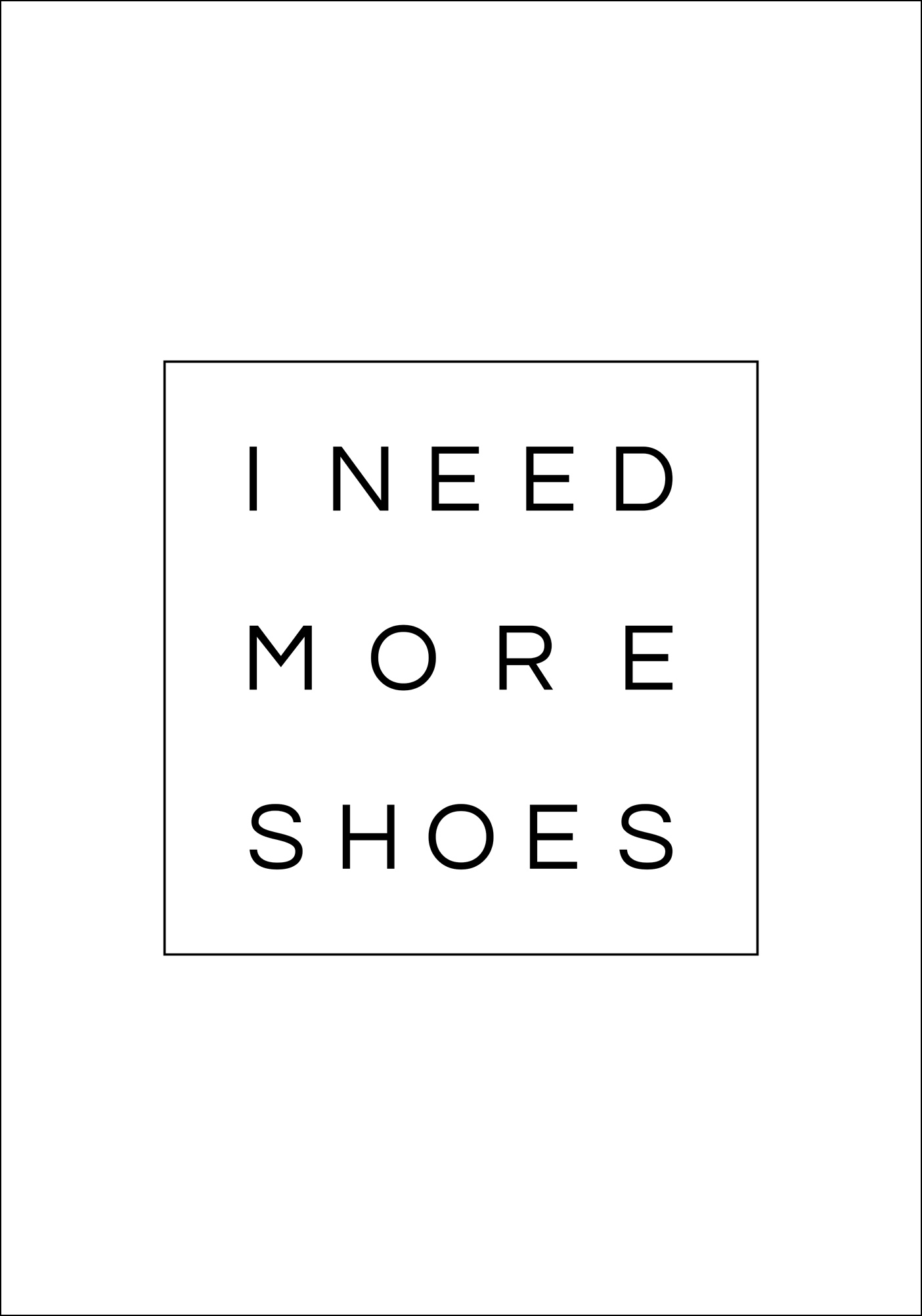 Tutti abbiamo bisogno di alcuni elementi fondamentali per sopravvivere come l'ossigeno, l'acqua e il cibo. Poi ci sono quelle cose di cui abbiamo bisogno per rendere la vita il più piacevole, come le scarpe! Se sei un amante delle scarpe, adori l'odore e la sensazione di un nuovo paio, questo poster è perfetto per te. Il poster ha un design elegante in bianco e nero con il semplice messaggio "Ho bisogno di più scarpe" stampato in caratteri eleganti. Intorno alle lettere c'è una sottile linea a forma di quadrato. Poiché il poster è disponibile in diverse dimensioni, puoi trovarne uno adatto sia per la scrivania dell'ufficio che per il soggiorno. Completa l'opera con una cornice nel tuo colore preferito!