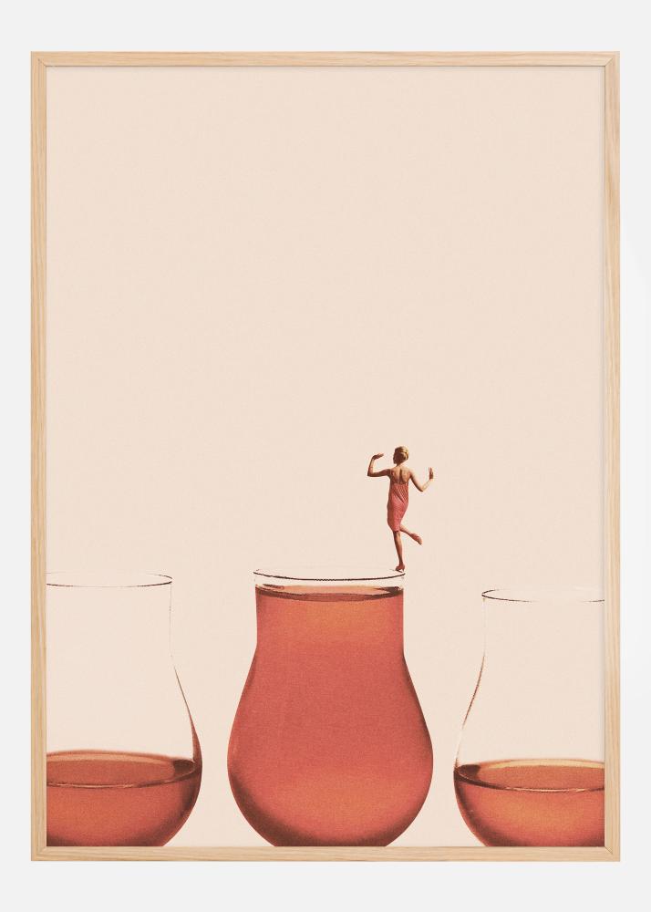 Lo schema cromatico caldo dell'immagine, caratterizzato da tonalità di rosa, rosso e marrone, crea una sensazione di comfort e intimità, rendendola ideale per ambienti dove calore e accoglienza sono elementi chiave. Il bicchiere traboccante, con il suo contenuto abbondante e invitante, offre un contrasto visivo al bicchiere vuoto, evocando un senso di scelta e possibilità. Questo poster accuratamente progettato è un meraviglioso dettaglio d'arredo che si adatta a sale da pranzo, cantine o altri spazi di ritrovo dove si celebra il buono della vita.