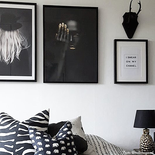 Poster alla moda che si abbinano ad altri motivi per creare una moderna galleria a parete.