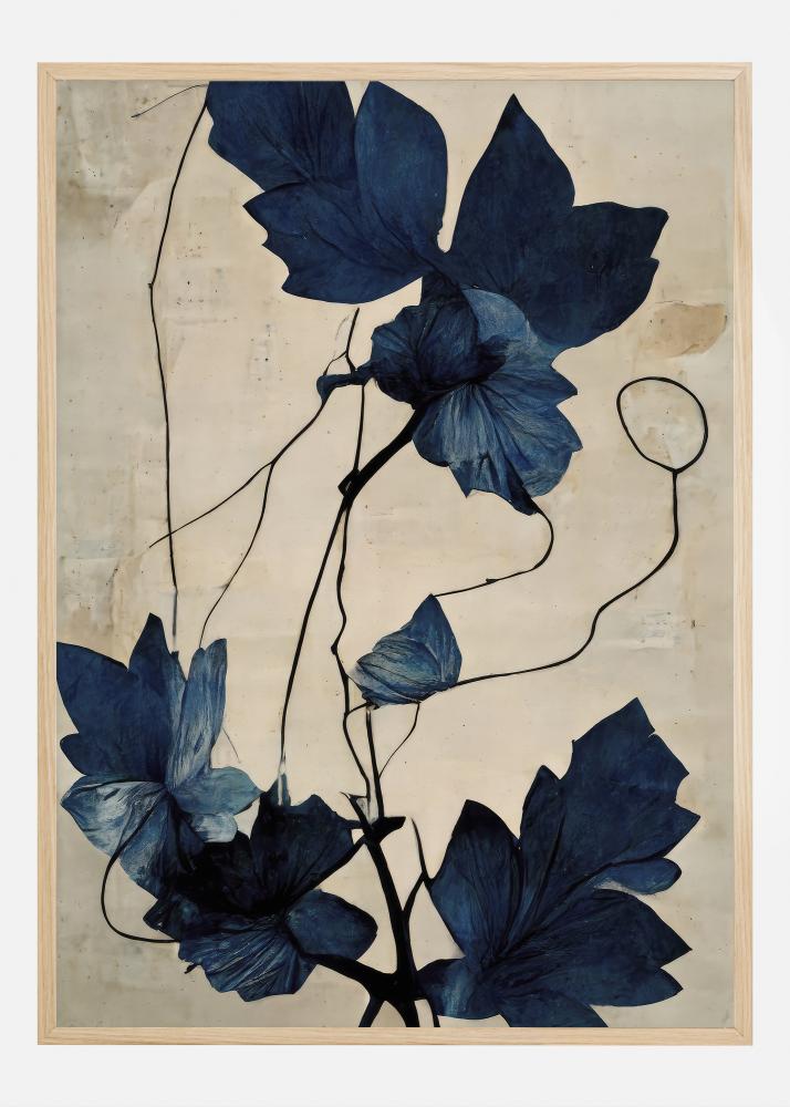 Questo poster cattura un'affascinante bellezza botanica con la sua rappresentazione dettagliata e realistica di fiori in un profondo colore blu indaco. Le sfumature intense e scure delle foglie e dei fiori contrastano con uno sfondo simile a carta invecchiata, conferendo una sensazione antica e senza tempo. Questa stampa è un omaggio alla classica illustrazione botanica e dona un'impressione elegante e sofisticata a qualsiasi stanza in cui venga collocata.