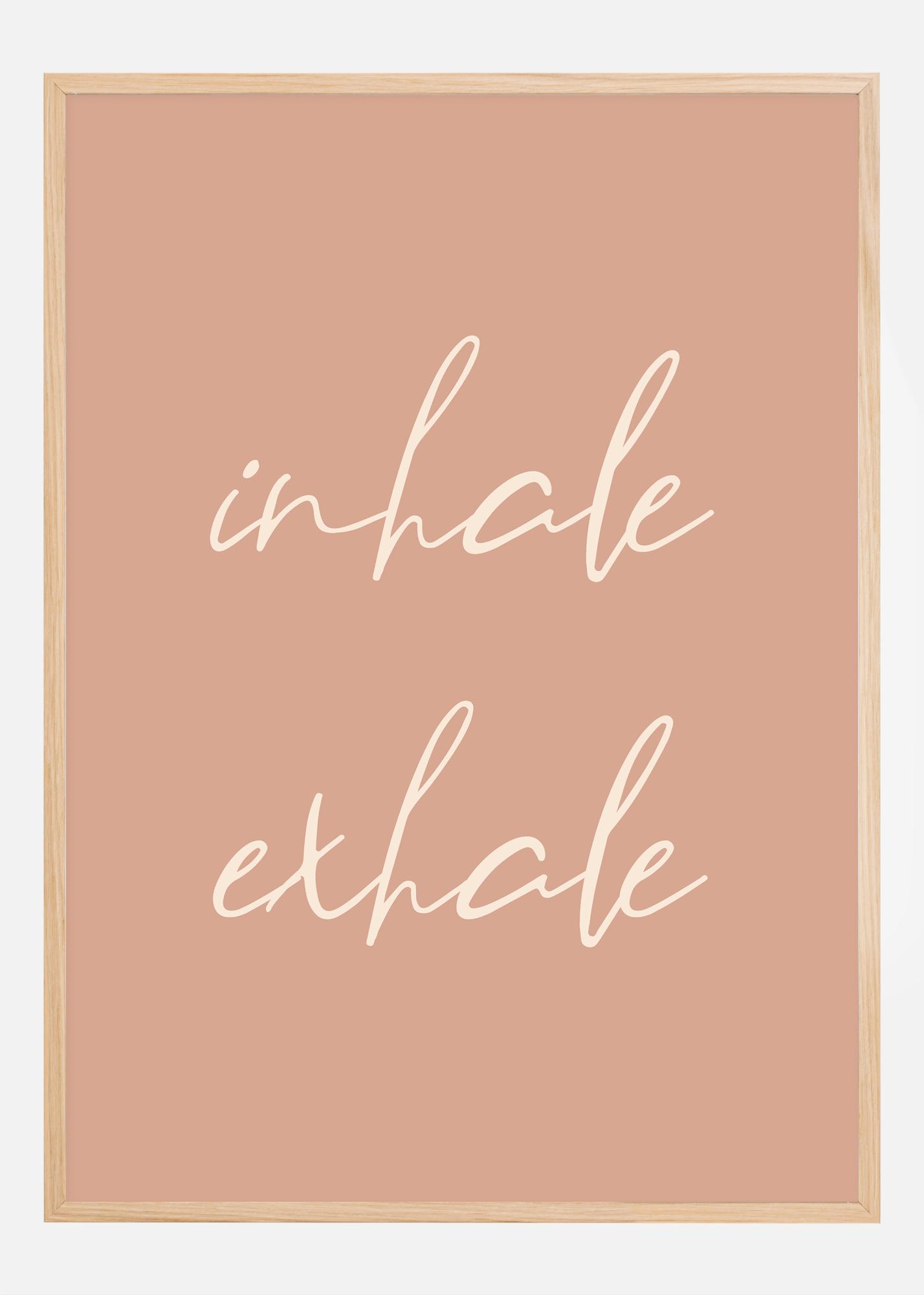 Questo poster puro e calmante, con le parole "inhale" e "exhale" elegantemente scritte, invita alla quiete e alla riflessione in qualunque spazio venga posizionato. È un costante promemoria del potere della respirazione e della pace interiore che può essere raggiunta attraverso la presenza consapevole. Il colore di sfondo morbido in un rosa tenue dà un'impressione rilassata e terapeutica che completa le parole fluide e scritte a mano.