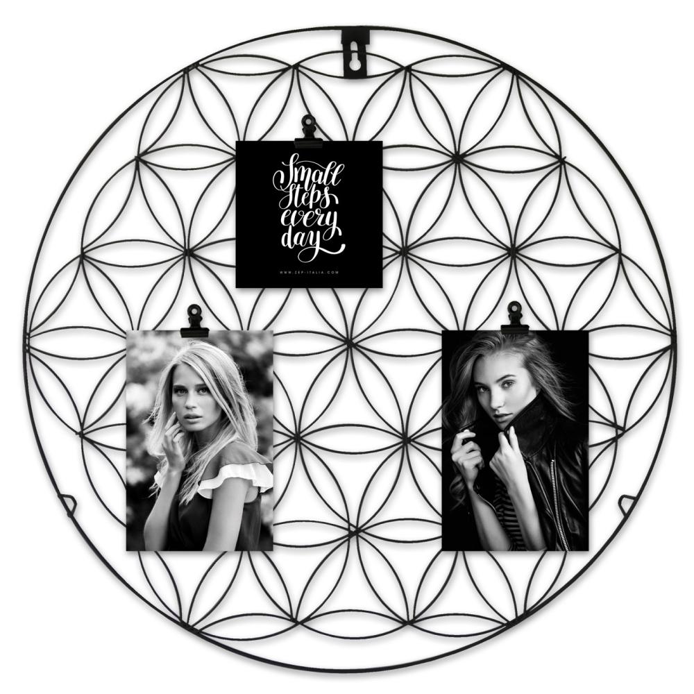 Questa è una bellissima cornice rotonda in metallo nero. La cornice del collage misura 50 cm Ø e le immagini vengono fissate con clip su uno sfondo con un motivo decorativo. Poiché le immagini vengono fissate con clip, puoi scegliere di fissare immagini di diverse dimensioni per creare una sensazione elegante e dinamica. Questa cornice rotonda per collage in metallo può essere posizionata con stile in casa per attirare l'attenzione, o regalata come un bel regalo a qualcuno!