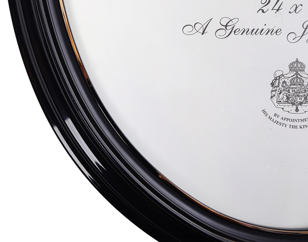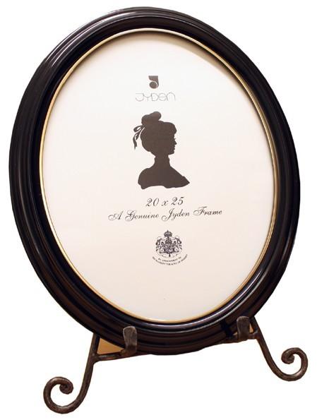 cornice ovale in stile classico di Jyden, perfetta per ritratti e simili. La cornice è di colore nero ma ha un bordo dorato vicino all'immagine.