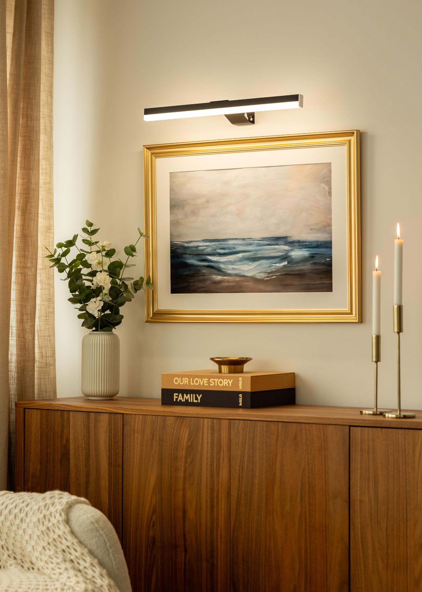 L'illuminazione ha una temperatura di colore regolabile che può variare tra 3000K, 4000K e 6000K. Ciò significa che puoi scegliere tra luce calda, neutra o fredda a seconda di ciò che meglio si adatta alla tua arte e ambiente. Con una fonte di luce LED che fornisce tra 262 e 300 lumen, ottieni un'illuminazione sufficiente per esaltare i dettagli senza che la luce prenda il sopravvento.