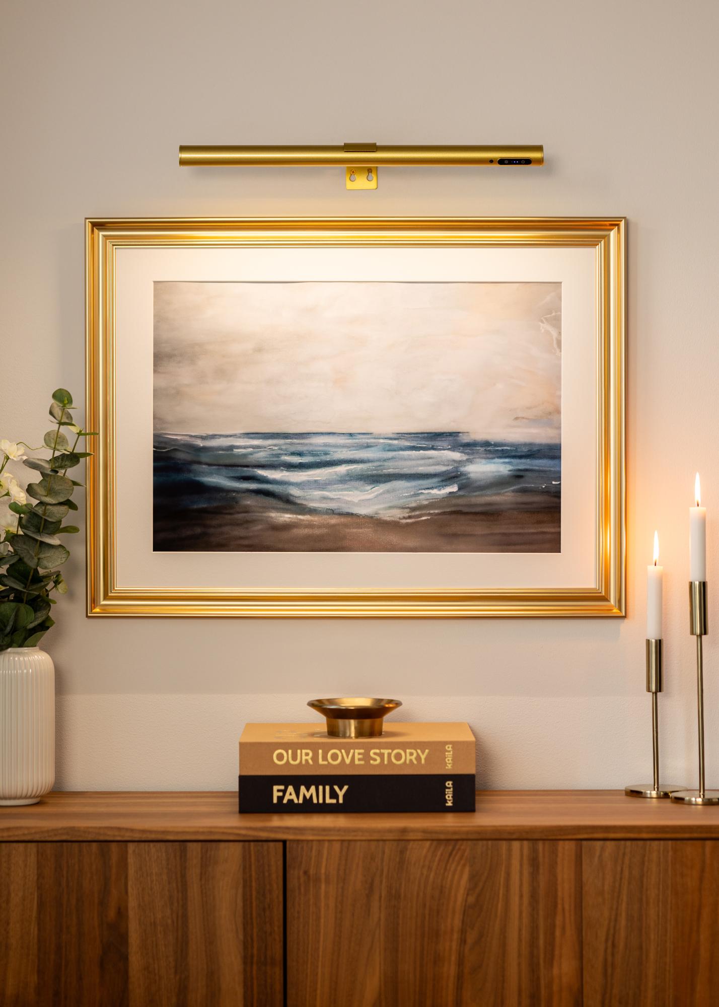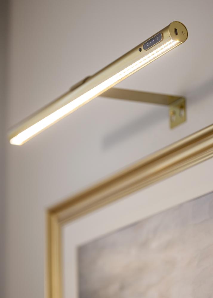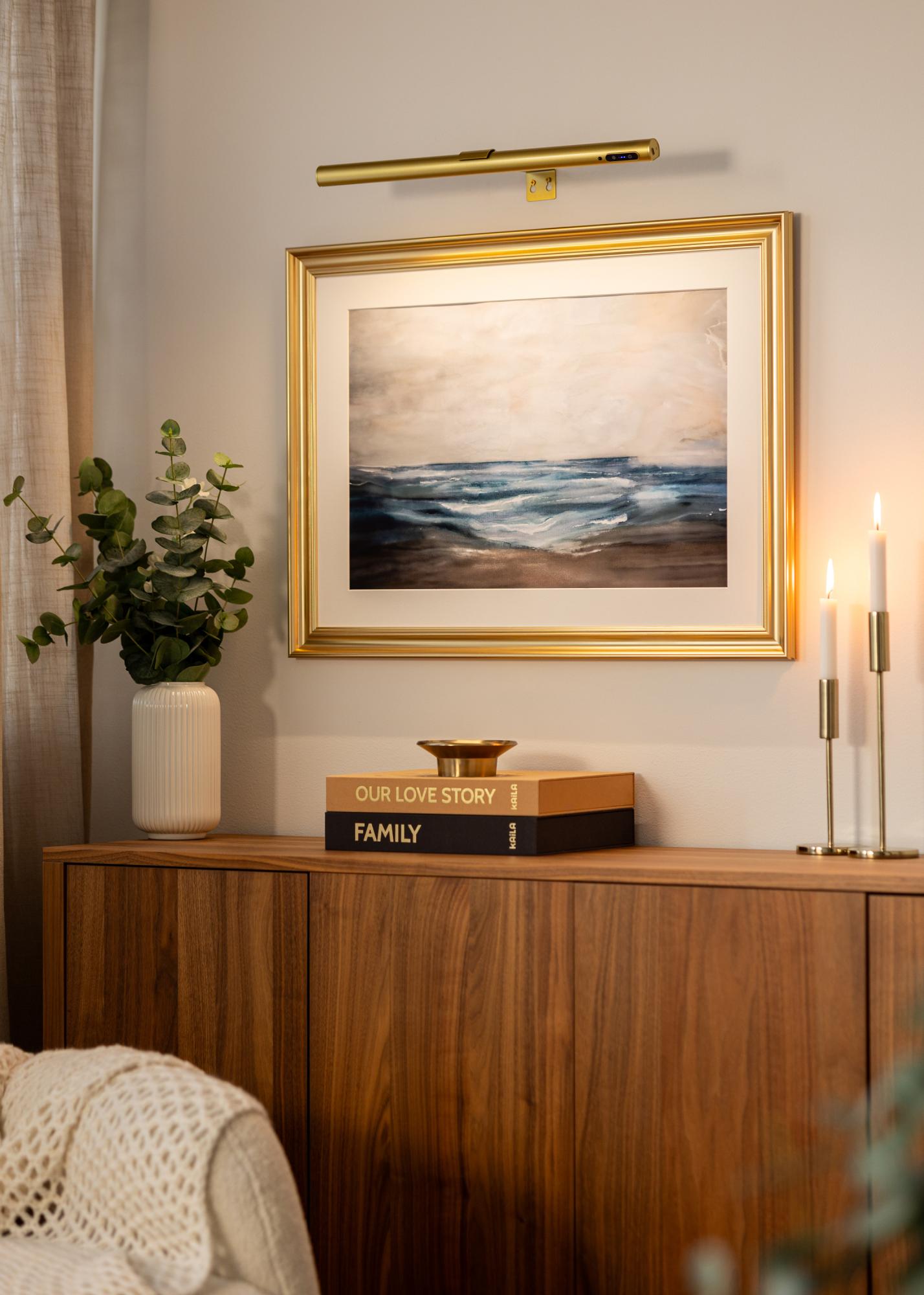 KAILA Halo è una moderna illuminazione per quadri a batteria in oro, perfetta per illuminare le tue opere d'arte senza fastidiosi cavi. Grazie al design senza fili, puoi posizionarla ovunque senza preoccuparti delle prese elettriche. La raffinata finitura dorata dona un'espressione esclusiva, mentre la luce si diffonde uniformemente per mettere in risalto i dettagli e i colori in modo splendido. Facile da montare e pratica da usare – una soluzione funzionale per dare ai tuoi quadri l'attenzione che meritano.
