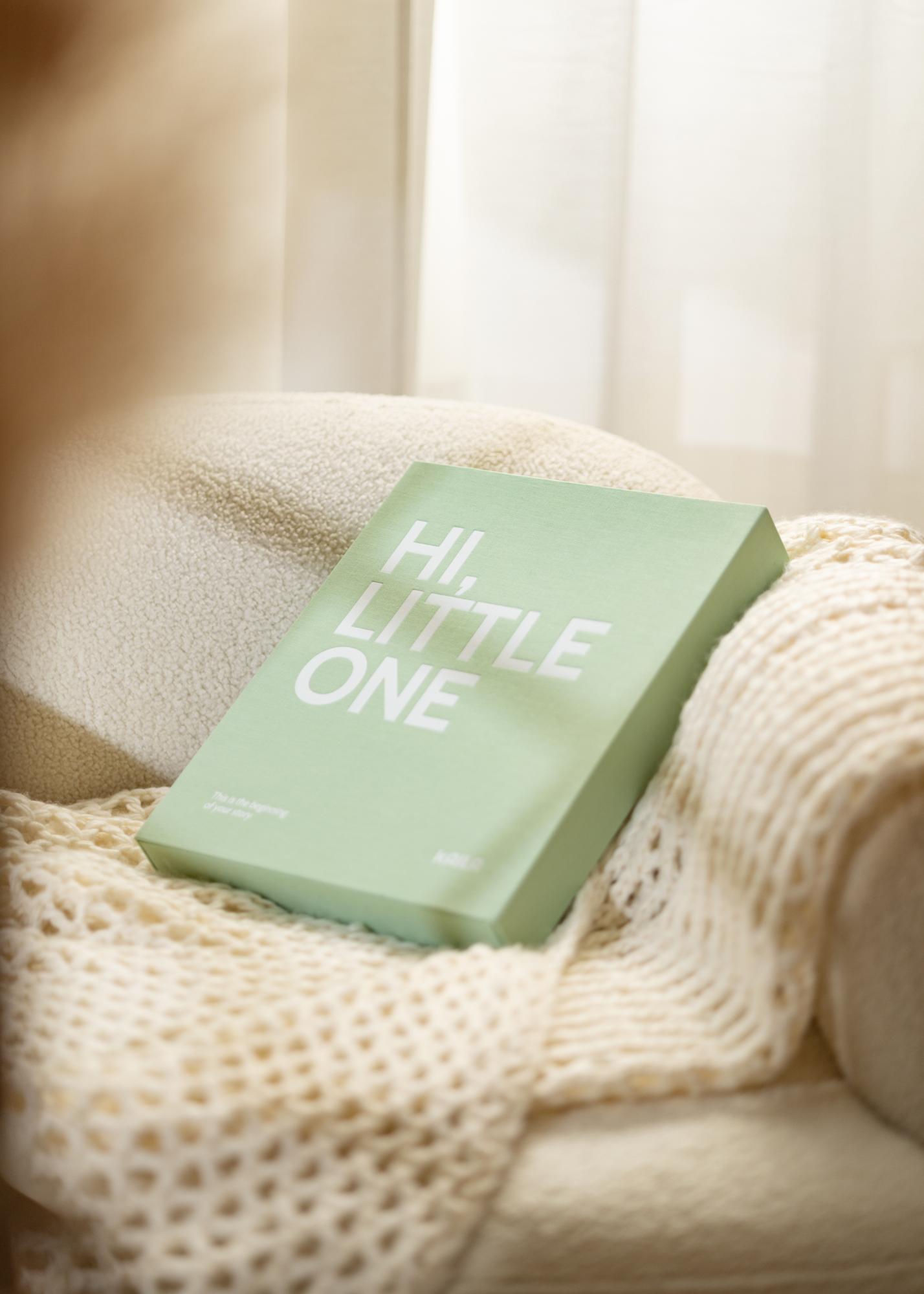 Conserva i tuoi ricordi più cari in modo elegante e conservali in un bellissimo Coffee Table Photo Album. Questo album fotografico ha il titolo "HI LITTLE ONE" stampato in grandi lettere bianche sulla copertina e un sottotitolo che recita "This is the beginning of your story", rendendo questo album perfetto per le tue belle foto dei primi tempi da neonato.
