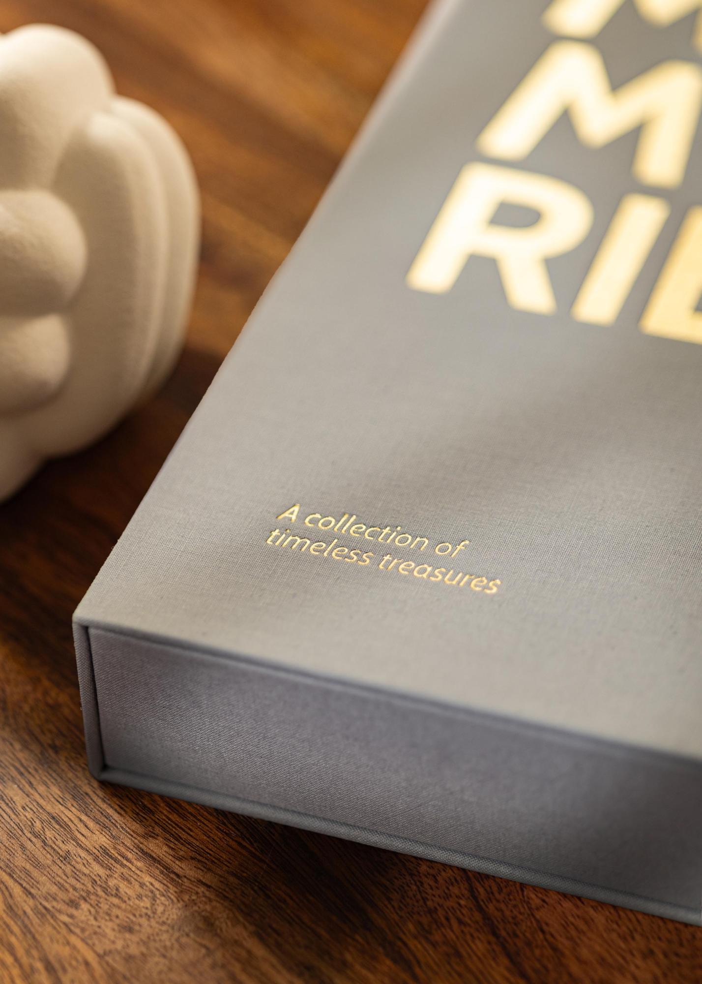 L'album è elegantemente rivestito in tessuto grigio e sulla sua copertina e sul dorso dell'album c'è una stampa dorata con la scritta "MEMORIES". Il titolo dell'album è completato anche dal sottotitolo ”A collection of timeless treasures” - "Una collezione di tesori senza tempo" che è stampato nell'angolo in basso a sinistra.