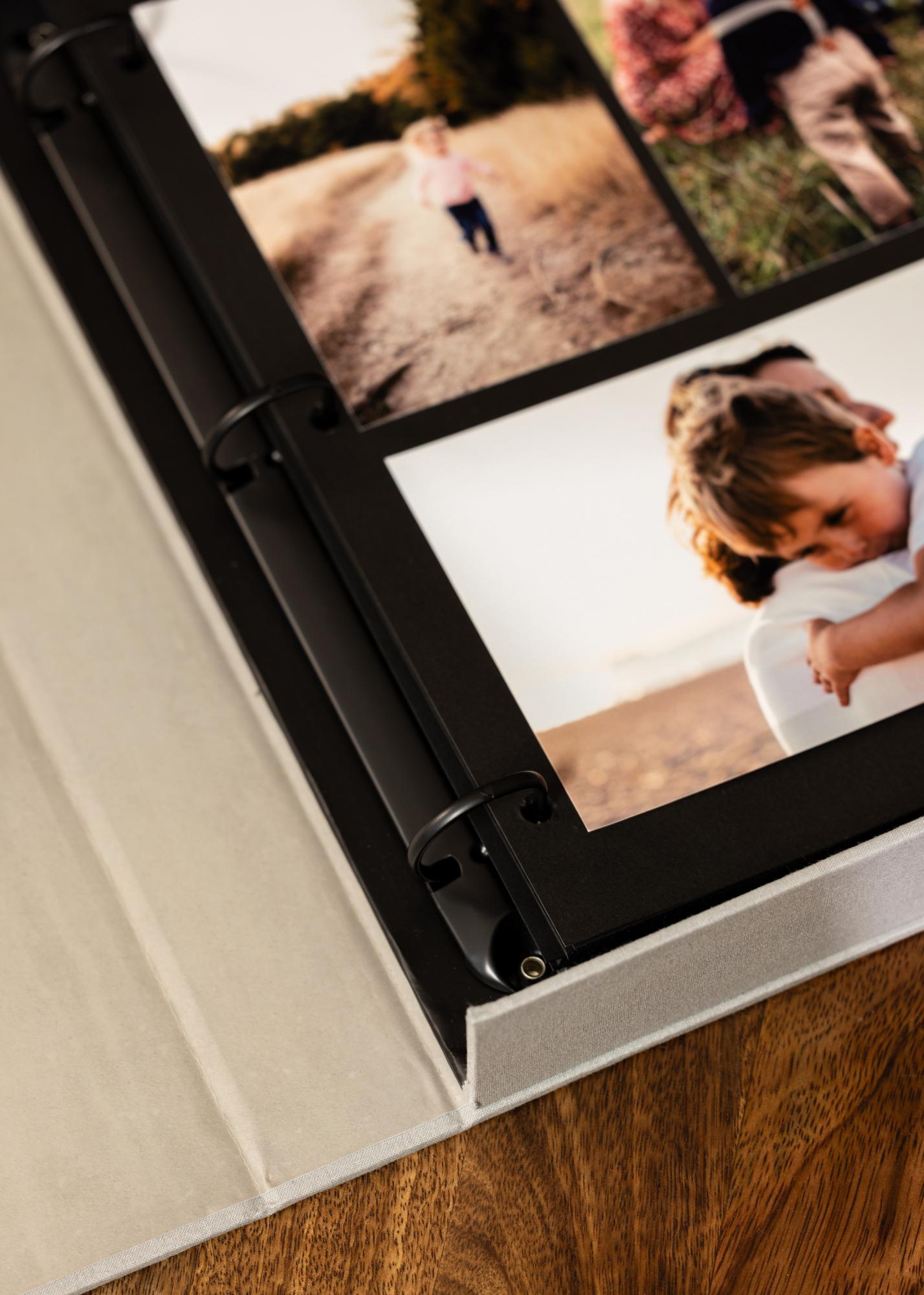 L'album fotografico è progettato come una scatola esclusiva che si apre per accedere al contenuto. All'interno dell'album troverai un raccoglitore ad anelli e 30 fogli neri (60 pagine) da riempire con i tuoi ricordi preferiti. Incolla le tue foto, il che ti offre grande flessibilità e la possibilità di esprimere la tua creatività.