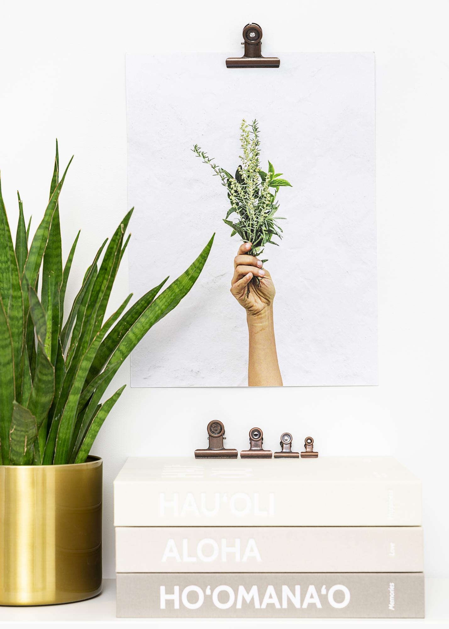 Questo è un gancio in metallo in stile rustico con una bellissima finitura in ottone consumato che ti offre una sospensione alla moda per poster o stampe. L'installazione sulla parete è anche molto semplice grazie ai fori nella parte superiore rotonda ed elegante del gancio. L'apertura del gancio offre una presa flessibile ma robusta che ti consente di appendere sia fogli sottili che poster con uno spessore leggermente più generoso, e se vuoi appendere un grande poster puoi sempre scegliere di utilizzare due fermagli in metallo.