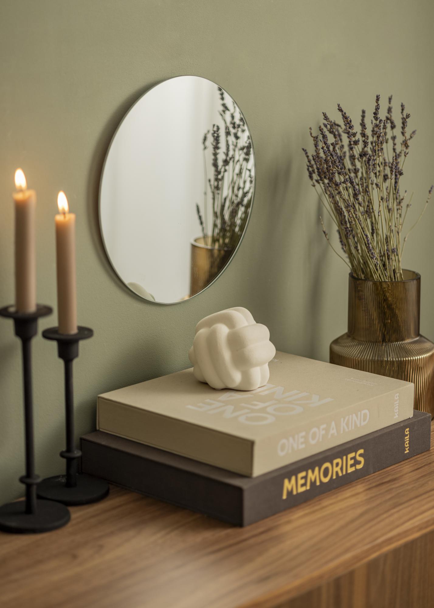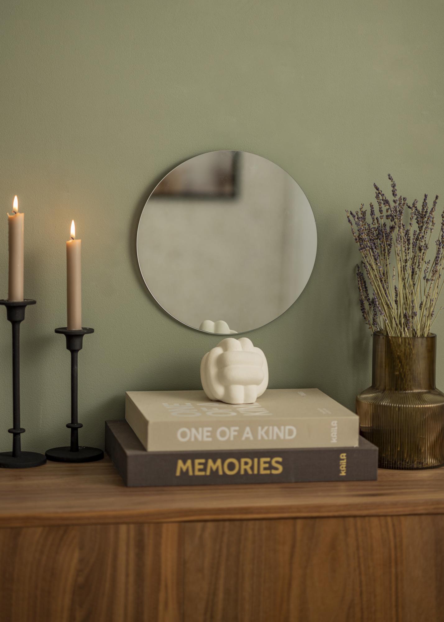 Specchio rotondo con diametro di 30 cm incluso in una serie di specchi rotondi di KAILA. Disponibile in ben 13 dimensioni in modo da trovare quella perfetta per la tua stanza. Lo specchio è estremamente sottile ed elegante e si adatta a tutti i tipi di stanze e stili di arredamento.
