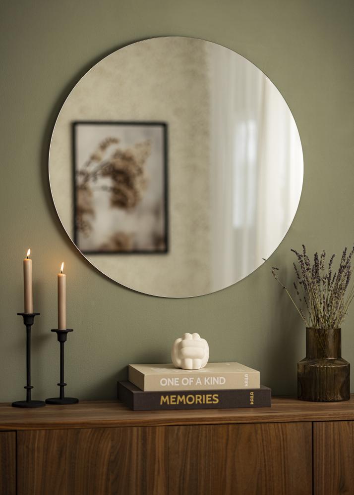 Specchio rotondo con un diametro di 75 cm incluso in una serie di specchi rotondi di KAILA. Disponibile in ben 13 dimensioni diverse, in modo da poter trovare quella perfetta per la tua stanza. Lo specchio è estremamente sottile ed elegante e si adatta a tutti i tipi di stanze e stili di arredamento.