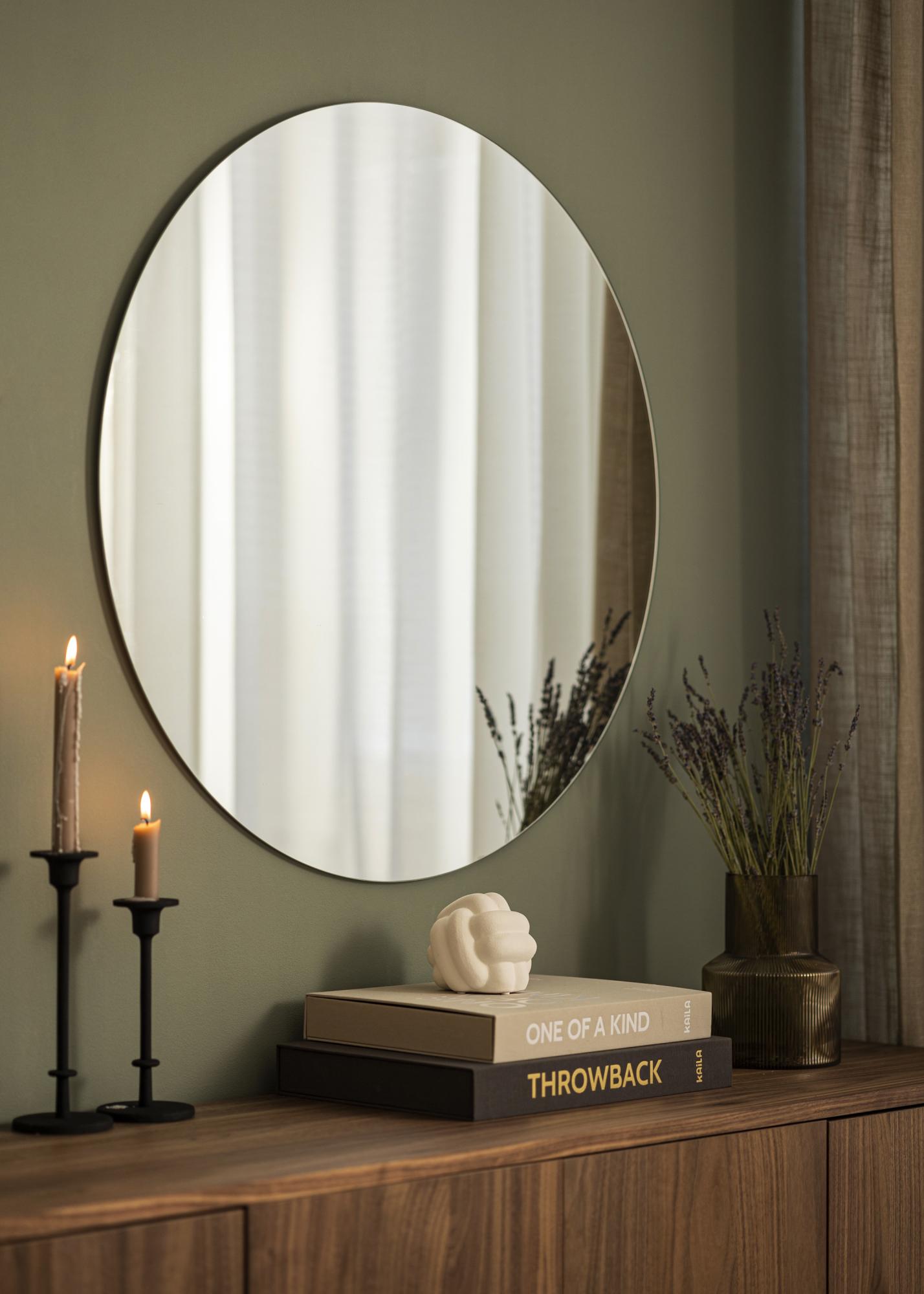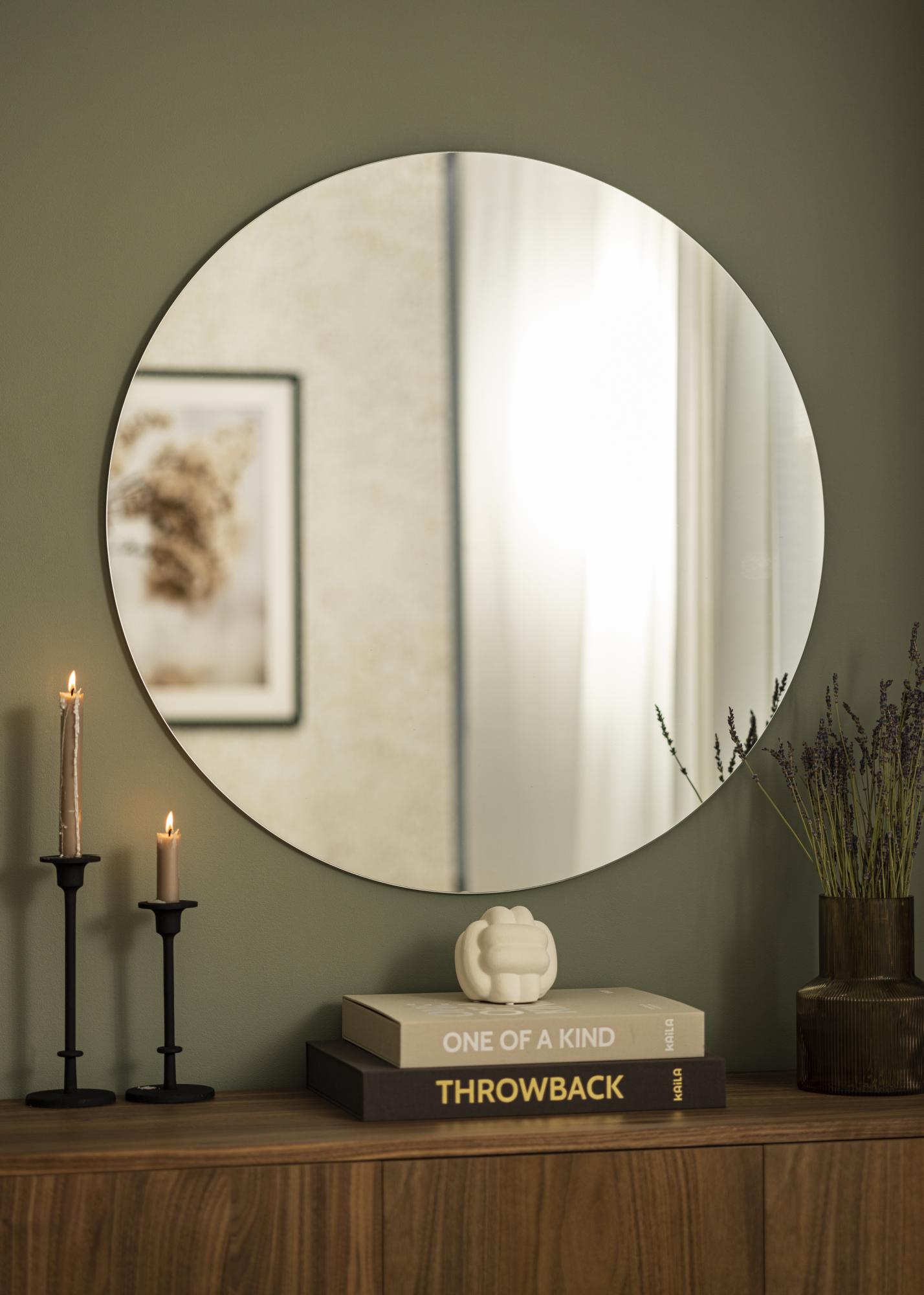 Specchio rotondo con un grande diametro di 80 cm incluso in una serie di specchi rotondi di KAILA. Disponibile in ben 13 dimensioni in modo da trovare quella perfetta per la tua stanza. Lo specchio è estremamente sottile ed elegante e si adatta a tutti i tipi di stanze e stili di arredamento.