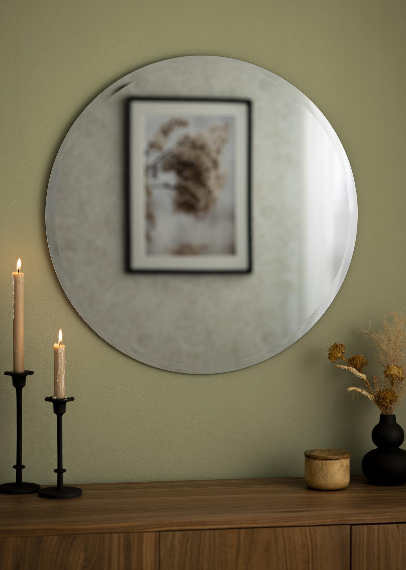La sensazione elegante che la forma e il colore dello specchio trasmettono è amplificata dalla mancanza della cornice. Invece, i bordi sono decorati con un bordo a faccetta ordinato, che dà allo specchio quel tocco in più.