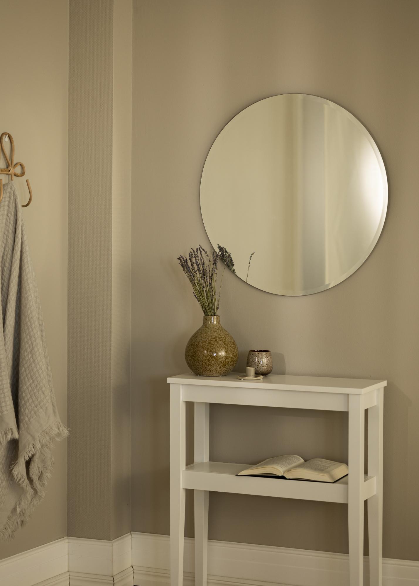 KAILA Rund Spegel Deluxe è un elegante specchio rotondo da parete con un bellissimo bordo sfaccettato. Il design pulito dello specchio lo rende adatto sia per la casa tradizionale che per quella moderna.