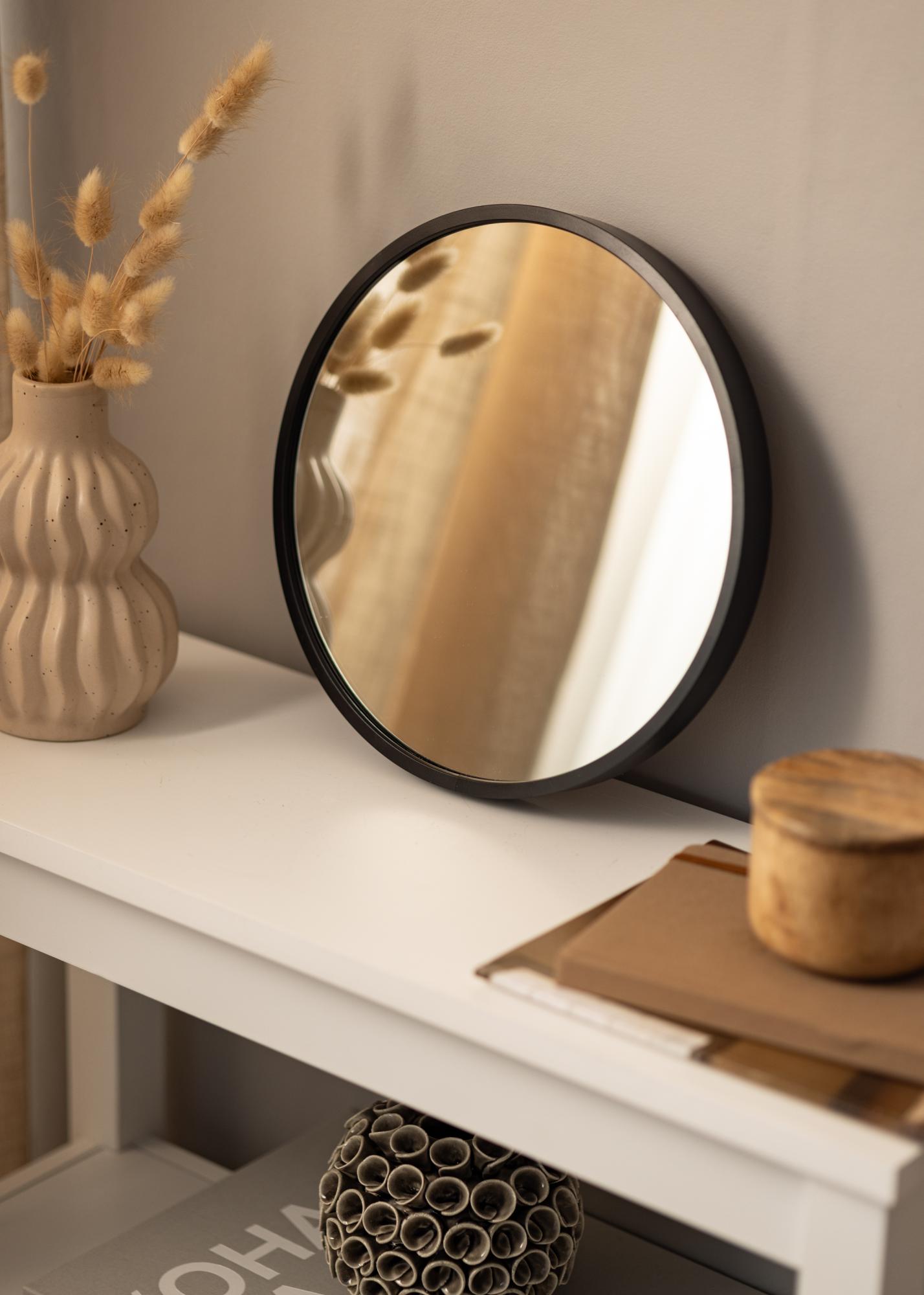 KAILA Round Mirror Edge Black è uno specchio rotondo con una sottile cornice metallica colorata in nero opaco, che gli conferisce un aspetto industriale e alla moda. La cornice ha una profondità tra i 30 e i 40 mm, a seconda della dimensione, il che fa sì che lo specchio sporga leggermente dal muro creando un effetto tridimensionale interessante. La profondità della cornice fa anche sì che lo specchio sia solido ma allo stesso tempo mantenga la sua estetica minimalista. Uno specchio rotondo perfetto da posizionare in qualsiasi stanza in cui si desideri aggiungere funzionalità e un design nordico elegante!
