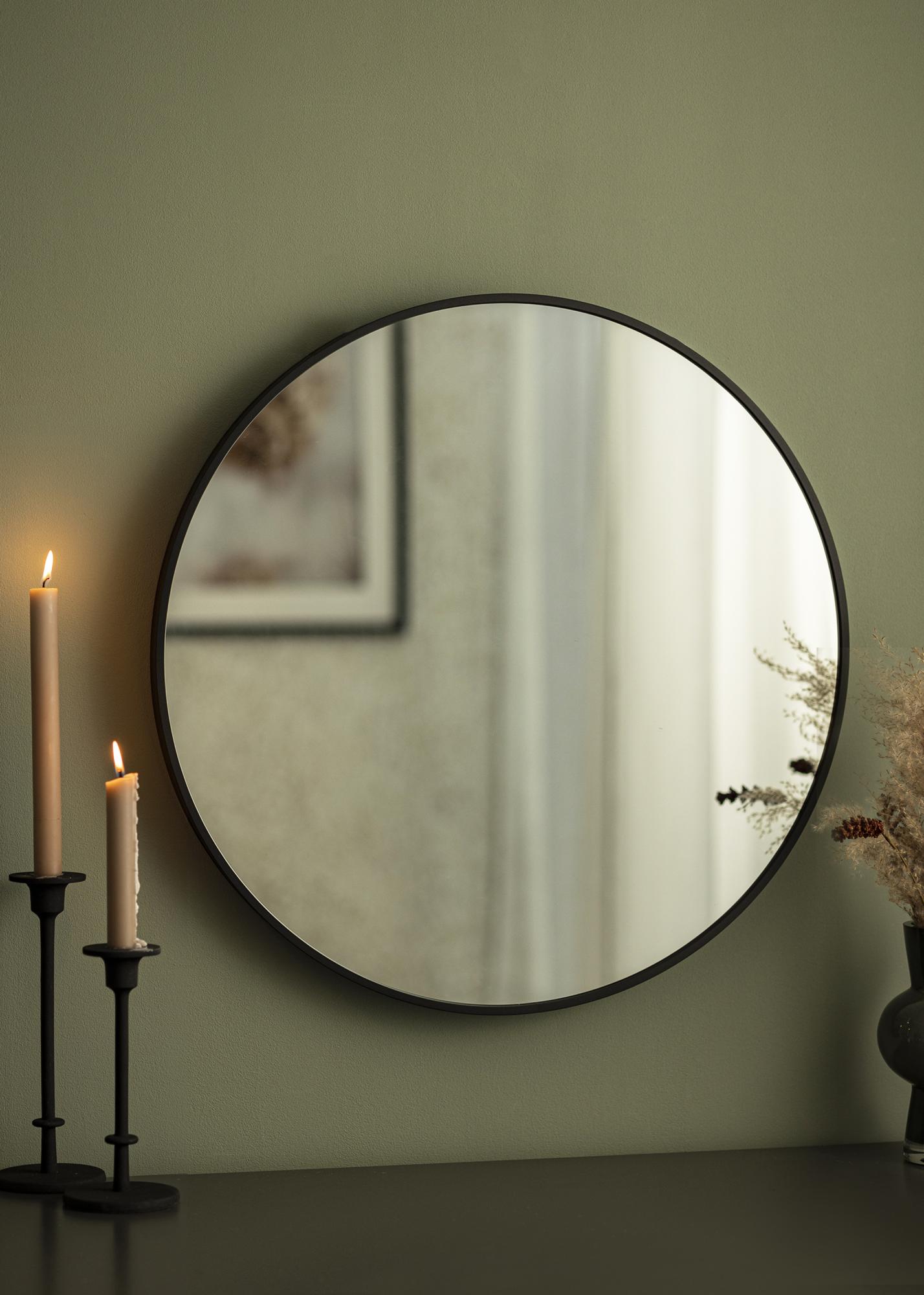 KAILA Round Mirror Edge Black è uno specchio rotondo con una sottile cornice metallica colorata in nero opaco, che gli conferisce un aspetto industriale e alla moda. La cornice ha una profondità tra i 30 e i 40 mm, a seconda della dimensione, il che fa sì che lo specchio sporga leggermente dal muro creando un effetto tridimensionale interessante. La profondità della cornice fa anche sì che lo specchio sia solido ma allo stesso tempo mantenga la sua estetica minimalista. Uno specchio rotondo perfetto da posizionare in qualsiasi stanza in cui si desideri aggiungere funzionalità e design nordico elegante!