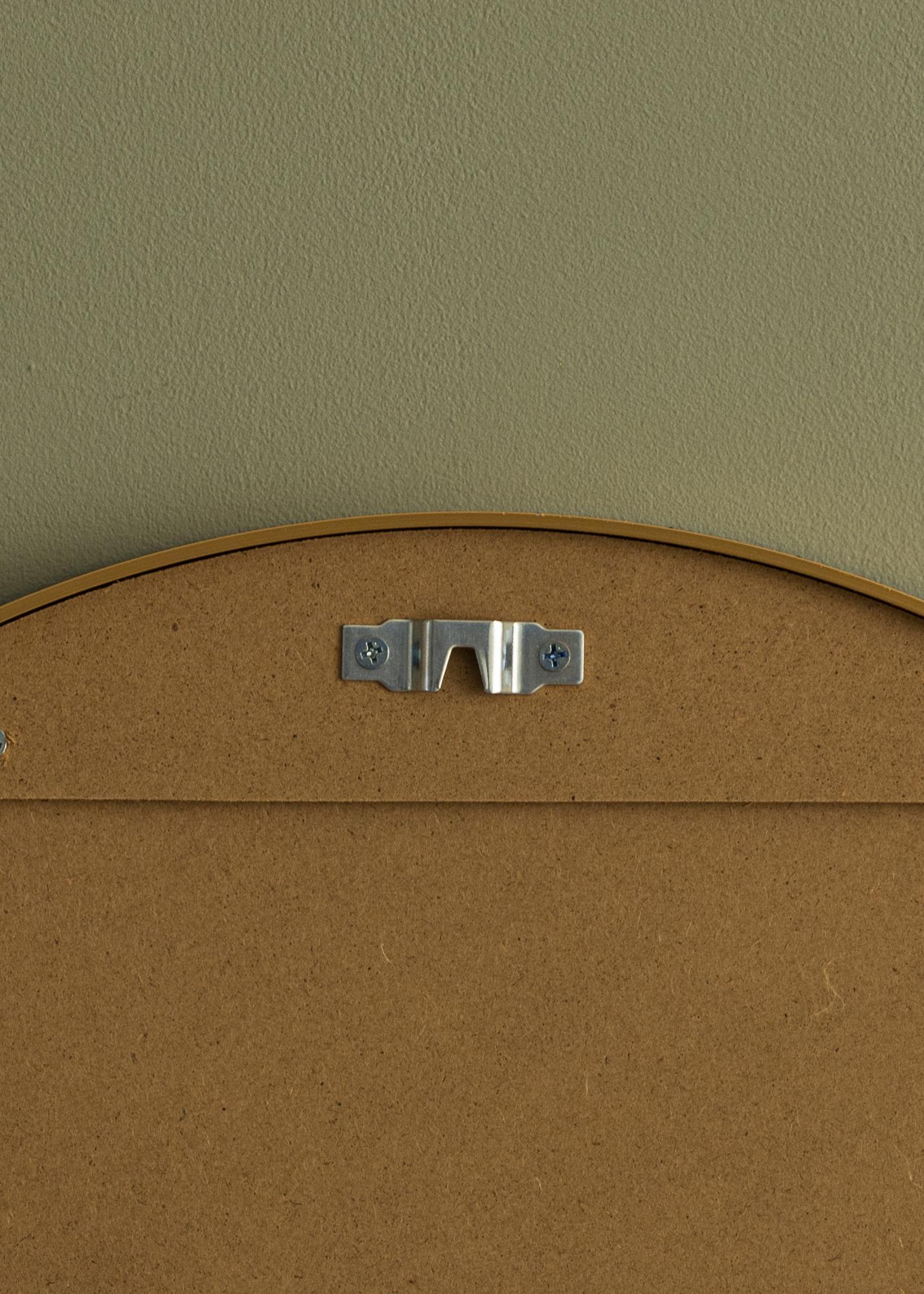 Lo specchio rotondo KAILA Edge Gold è disponibile in diverse dimensioni, e questo specchio ha un diametro di 50 cm. Il retro dello specchio è dotato di un supporto per il montaggio a parete facile e stabile, e vengono fornite le viti e i tasselli appropriati.