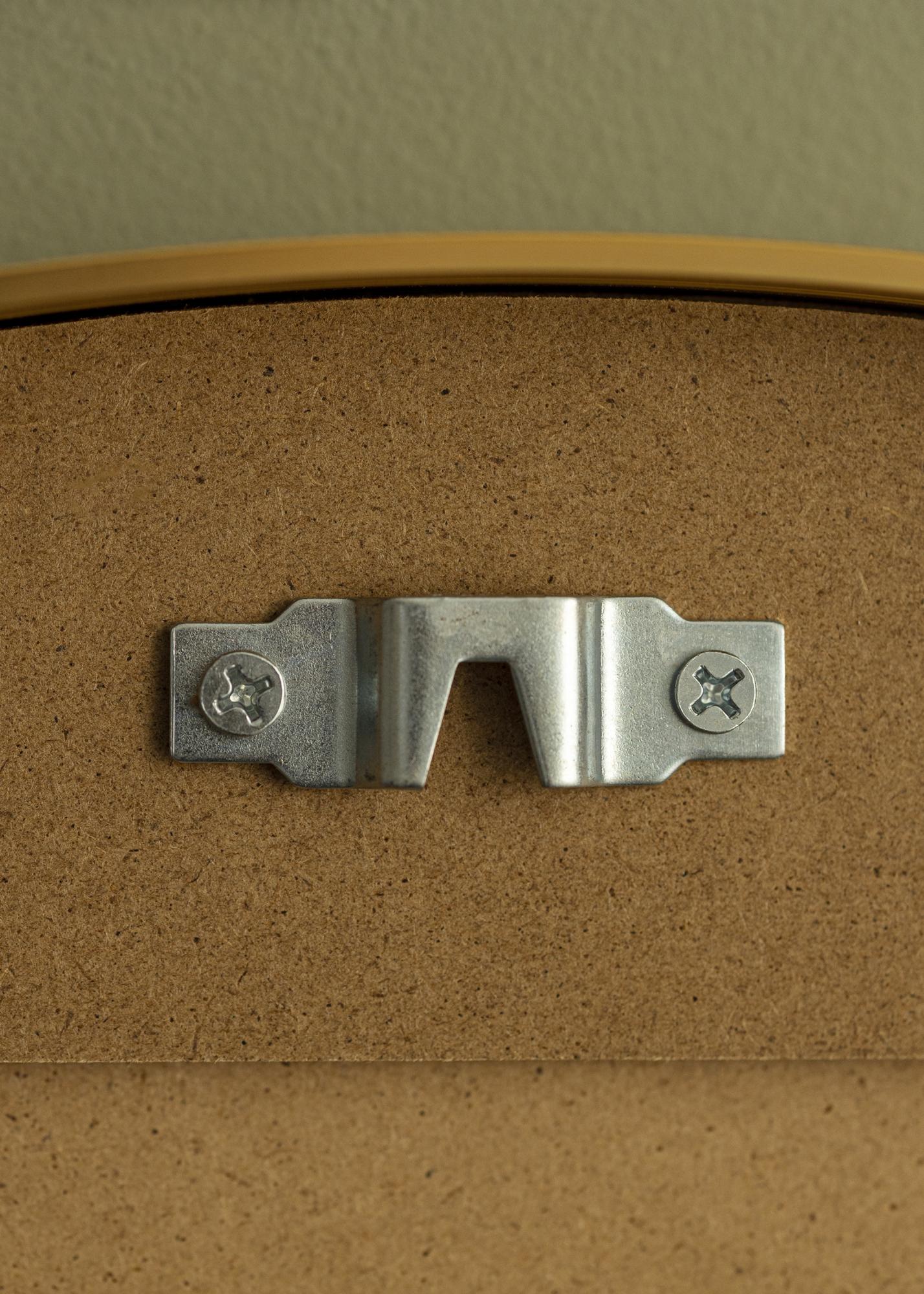 Lo specchio rotondo KAILA Edge Gold è disponibile in diverse dimensioni, e questo specchio ha un diametro di 60 cm. Il retro dello specchio è dotato di un supporto per il montaggio a parete facile e stabile, e vengono fornite le viti e i tasselli appropriati.